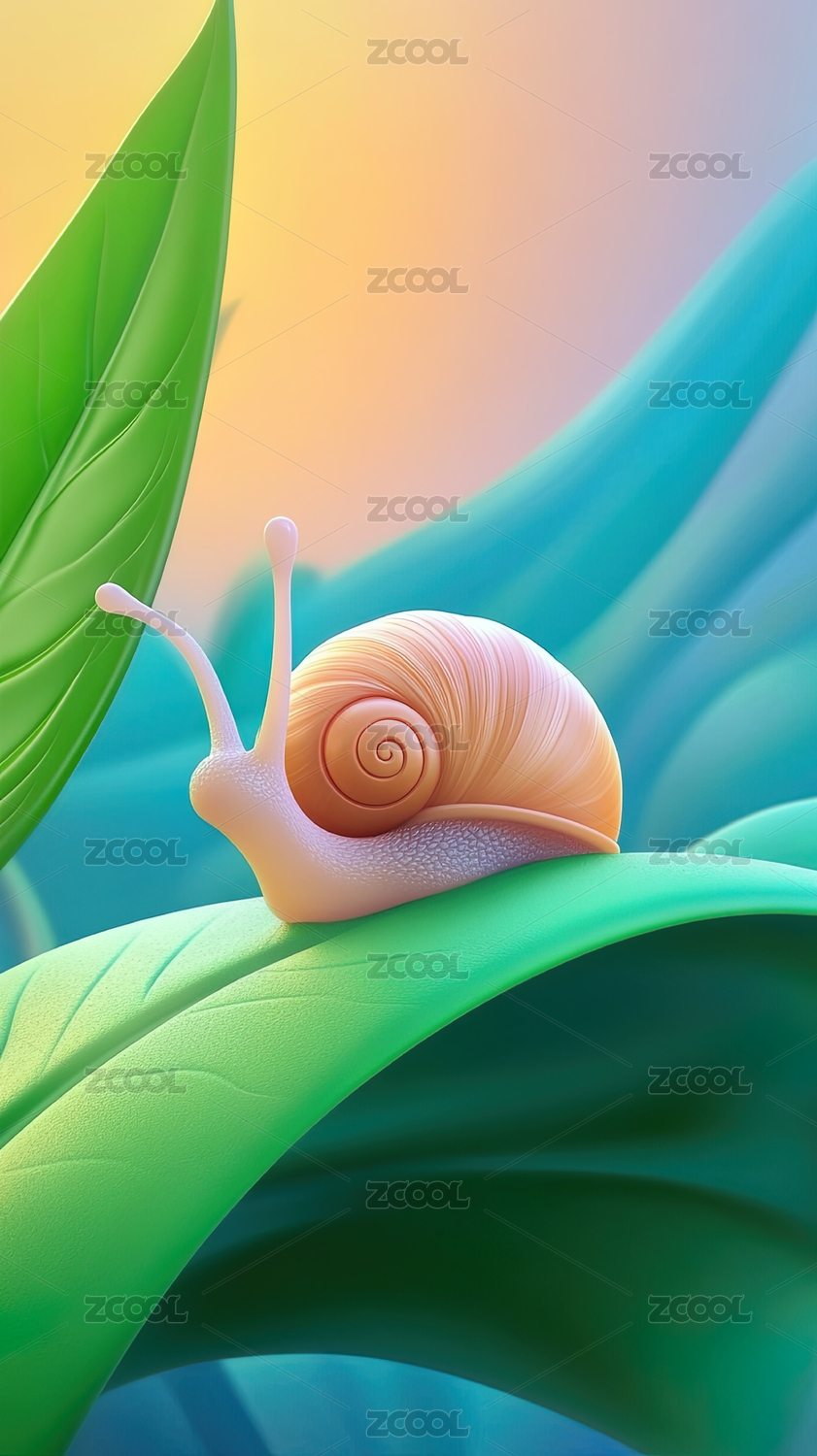 清新,彩色,背景,虚化,壳,蜗牛,3D,卡通,插画,明亮
