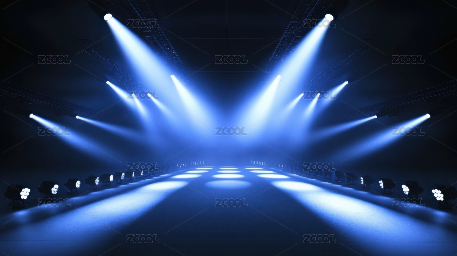 聚光灯下的蓝色舞台