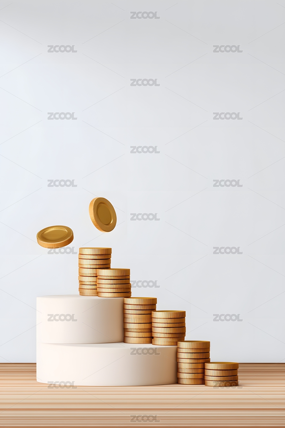 白墙背景下堆叠的硬币图案
