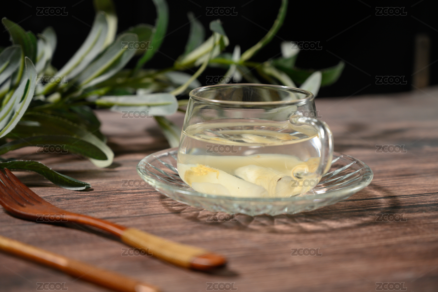 桌面上的杯子里的甘甜可口的金盏菊花茶