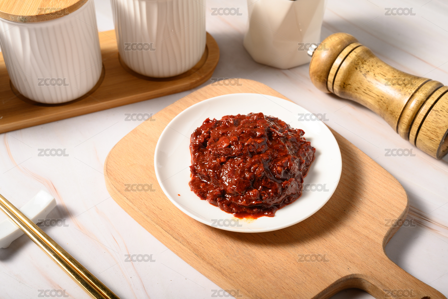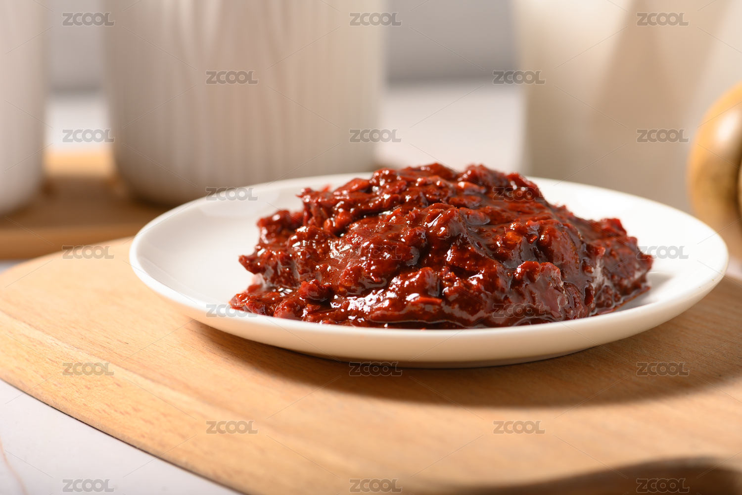 桌面上的盘子里的美味可口的传统豆瓣酱