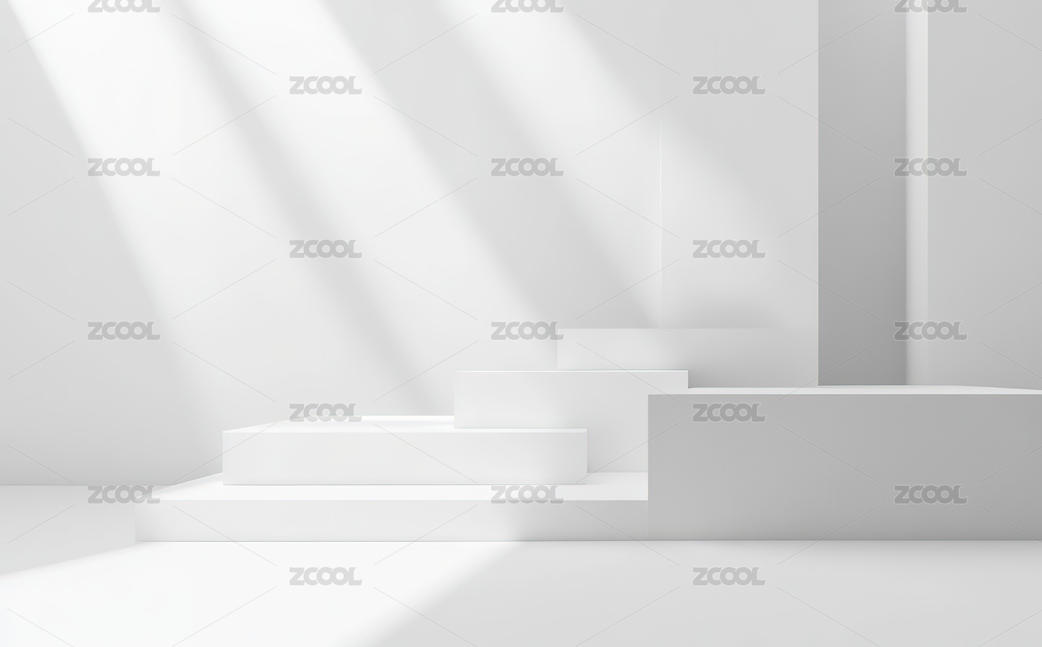 白色墙壁上排列的白色的平台