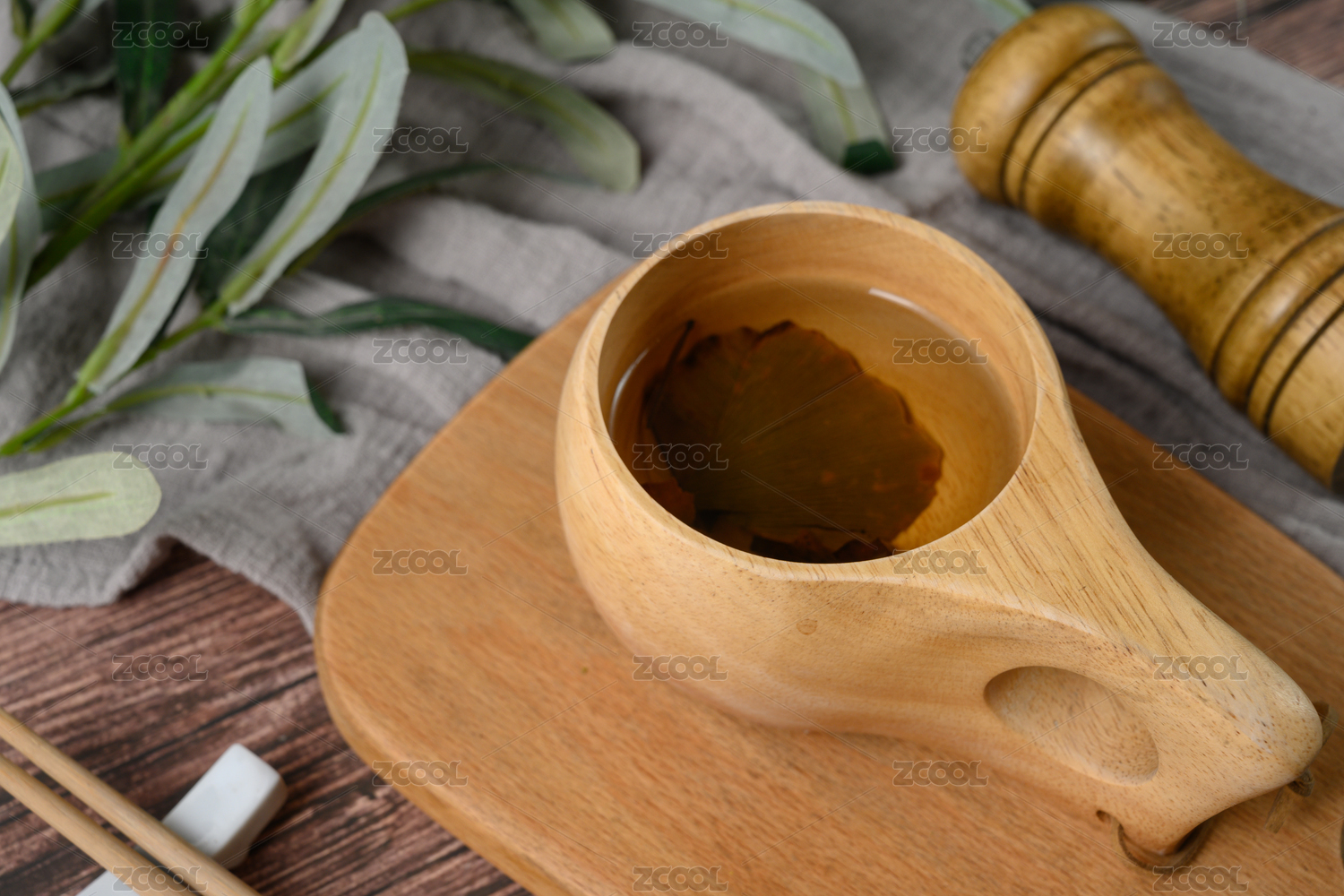 桌面上的盘子里的甘甜可口的银杏叶泡水