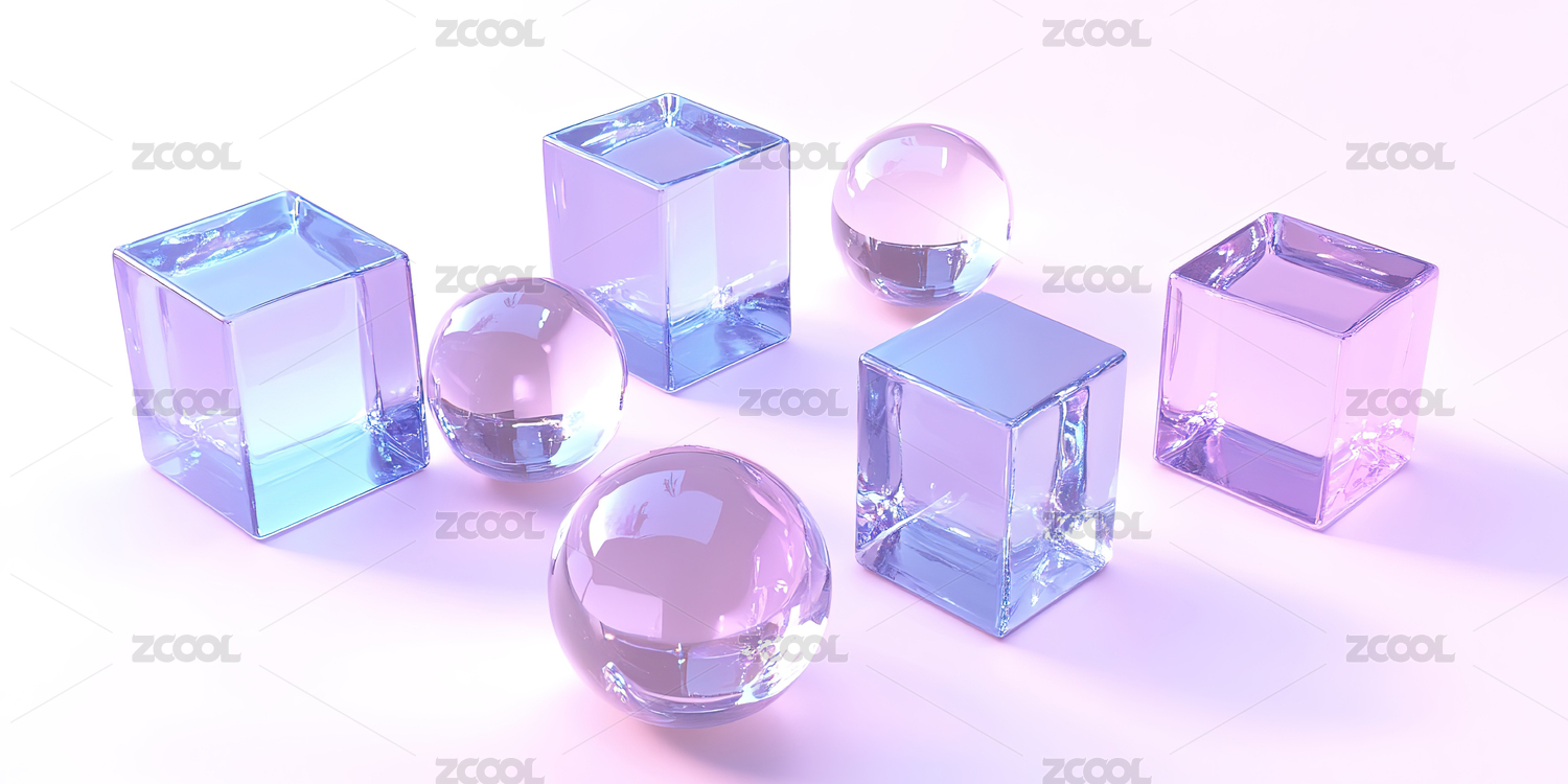 透明水晶几何体3D渲染
