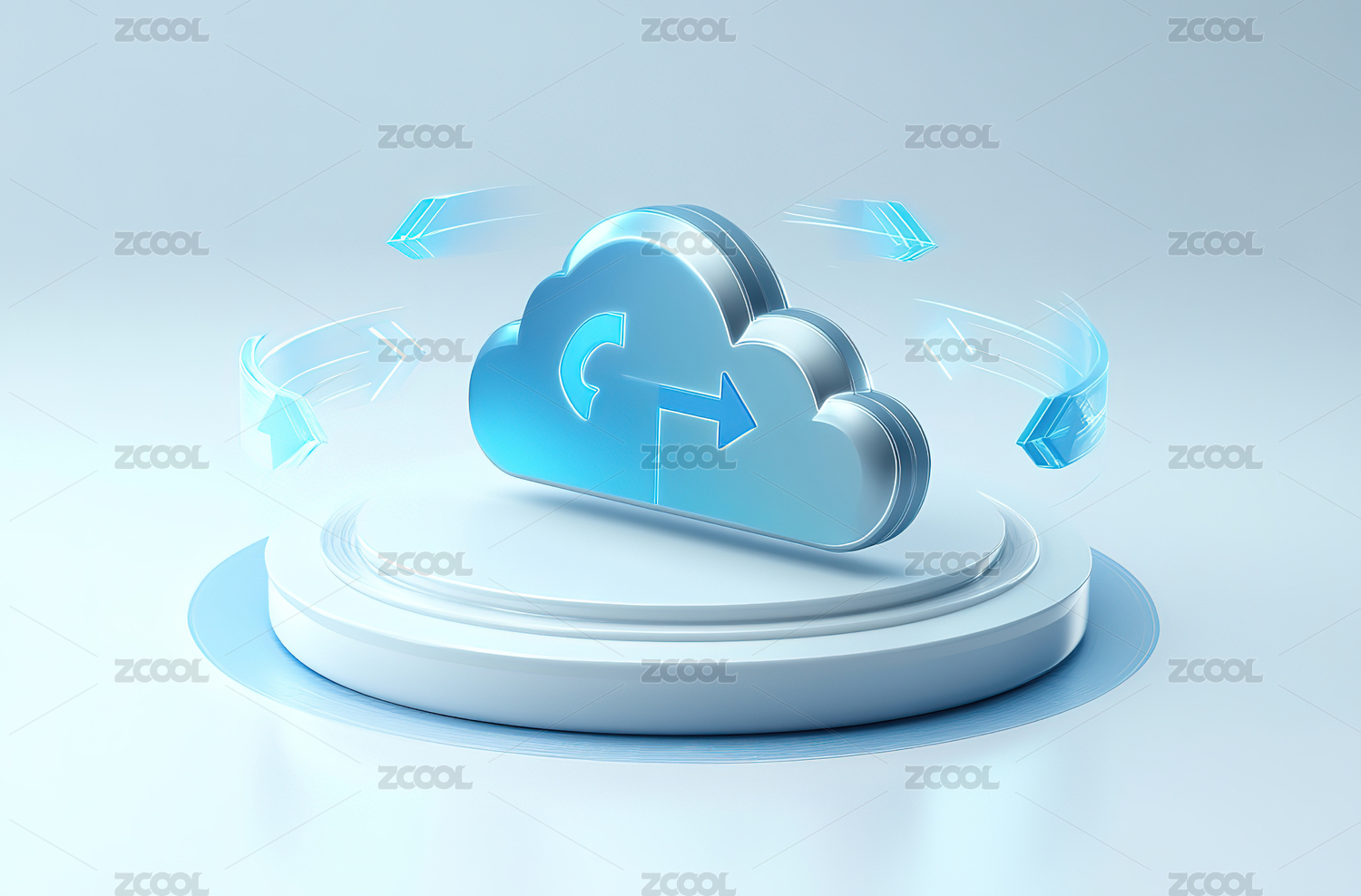 科技蓝色3D毛玻璃云计算图标
