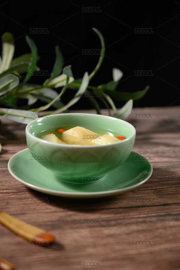 桌面上的碗里的美味可口的冰糖炖雪梨