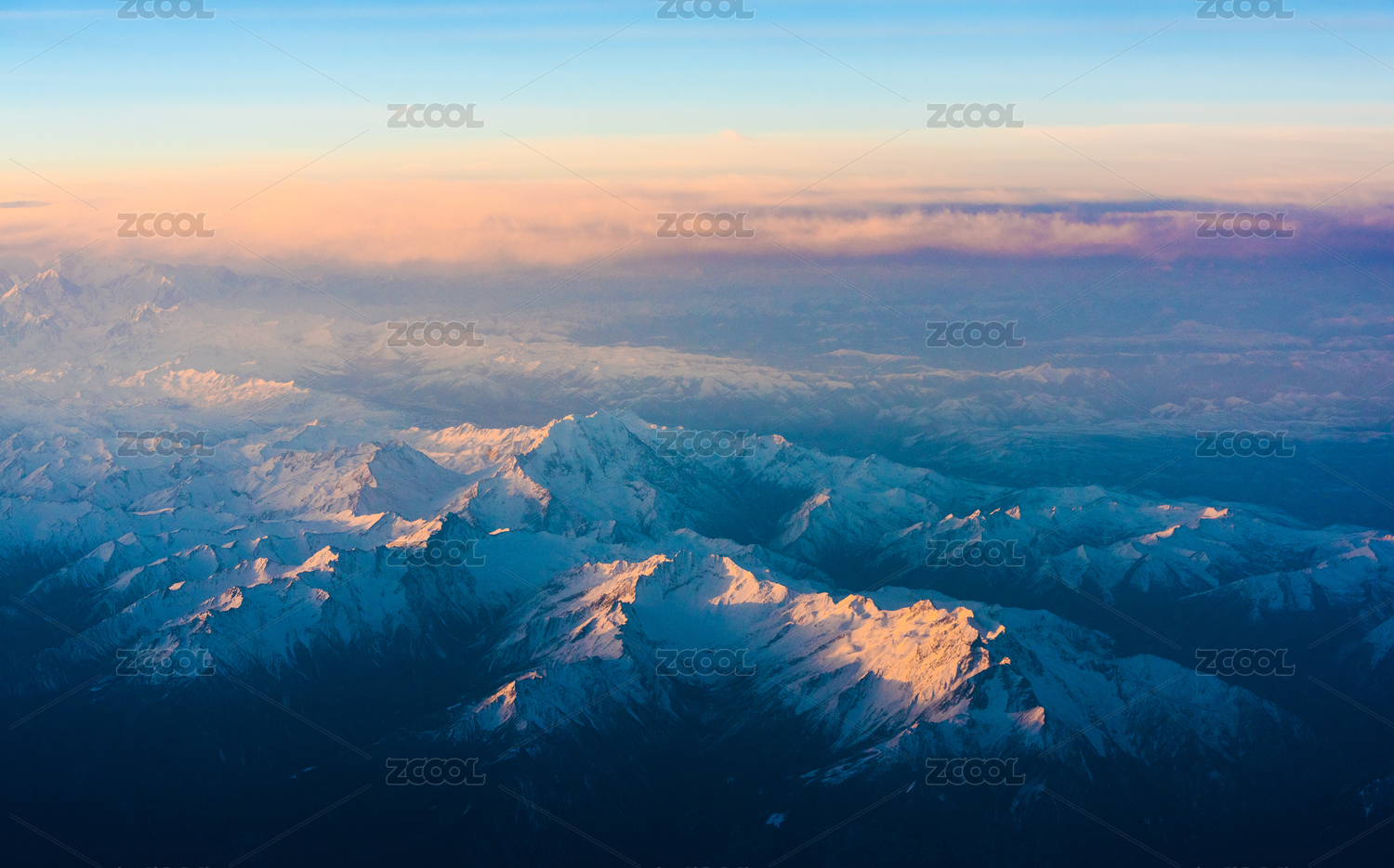 飞机上拍摄的雪山与云层