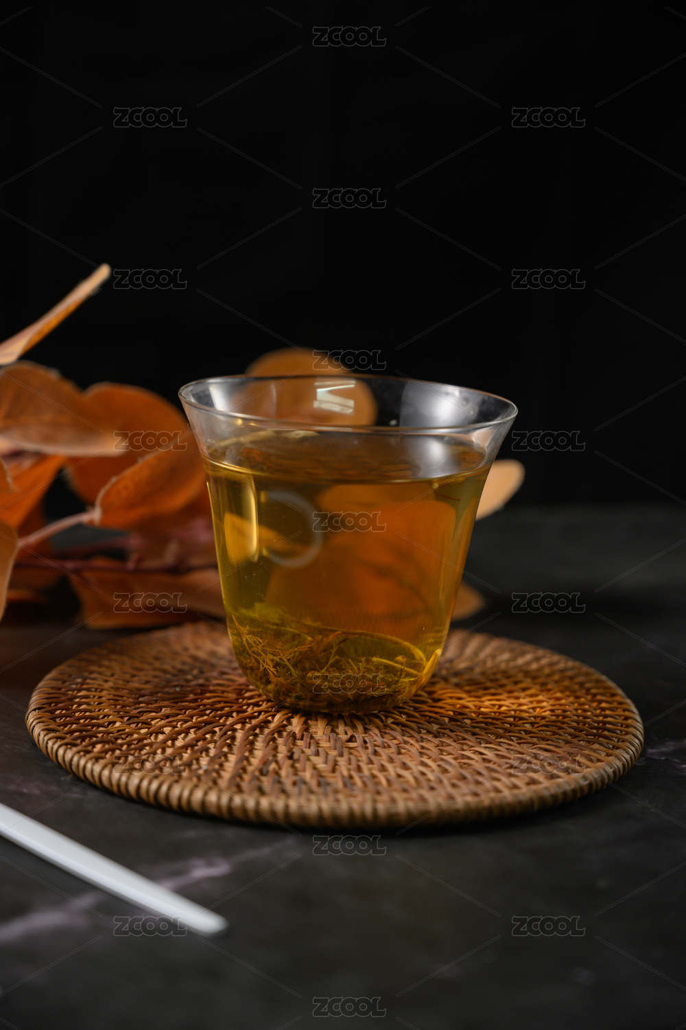 桌面上的杯子里的甘甜可口的夜交藤茶