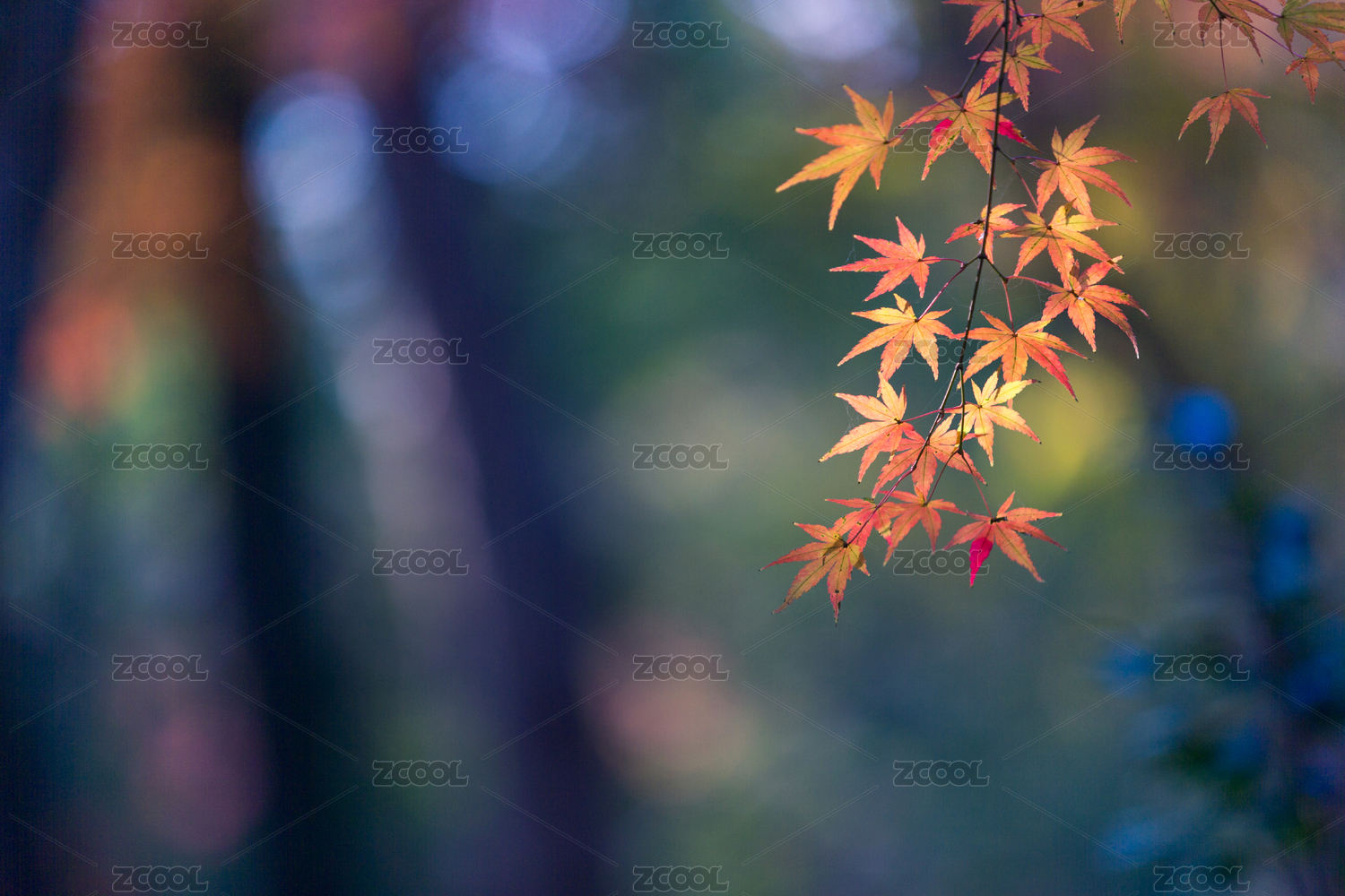 森林公园内的五彩枫叶