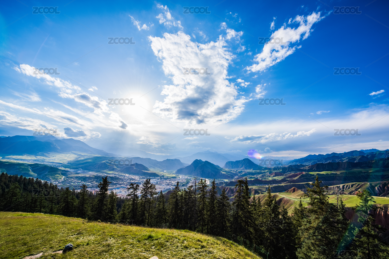 阴天下中国新疆天山天池与层峦叠嶂的群山