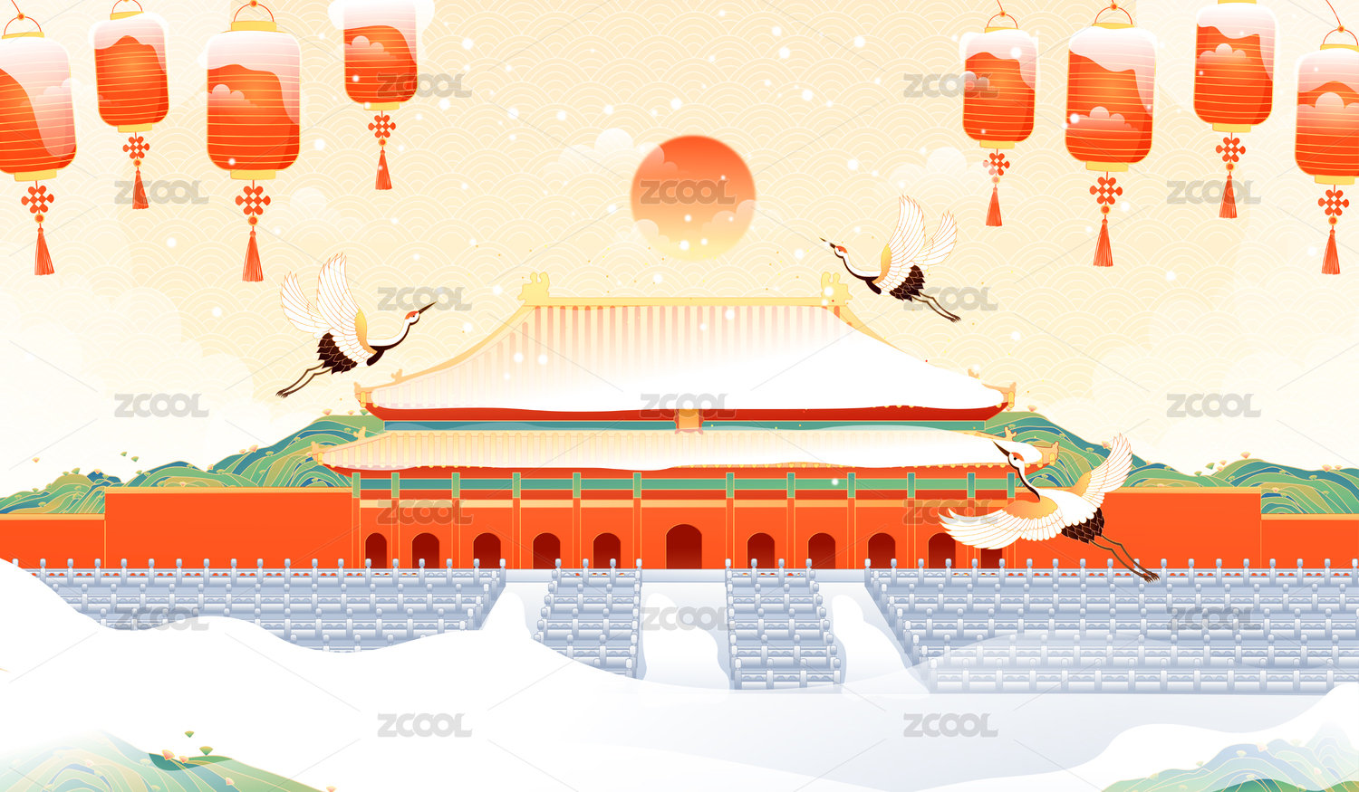国潮地标建筑庆祝中秋节国庆节月亮背景插画