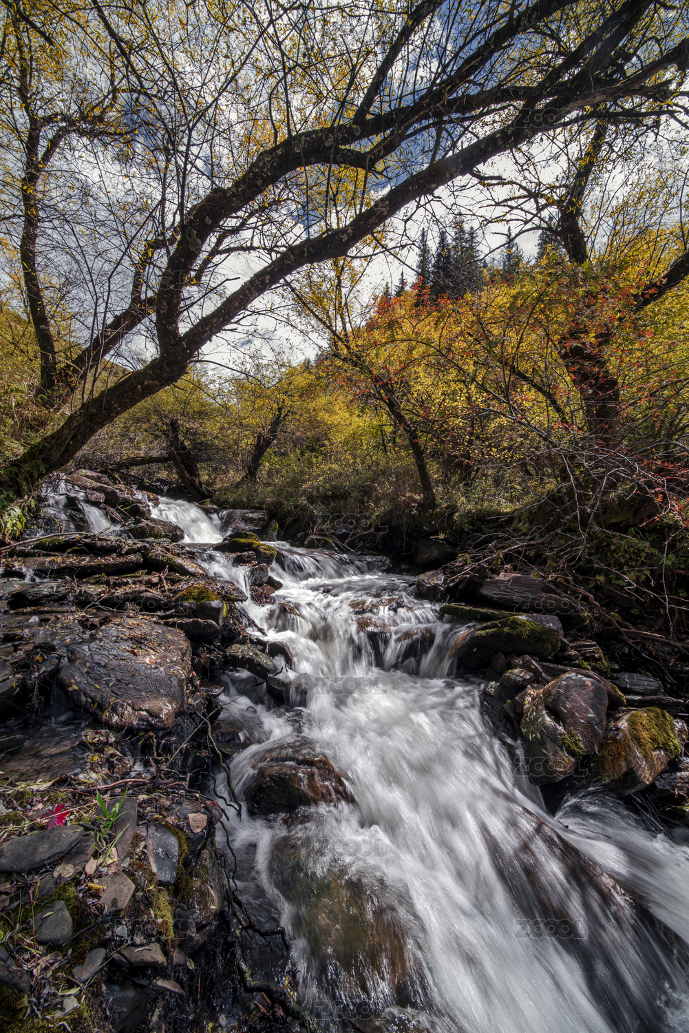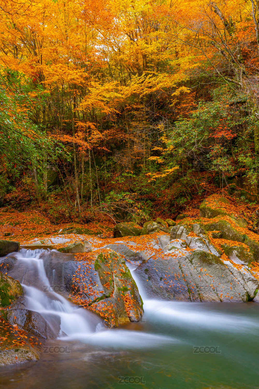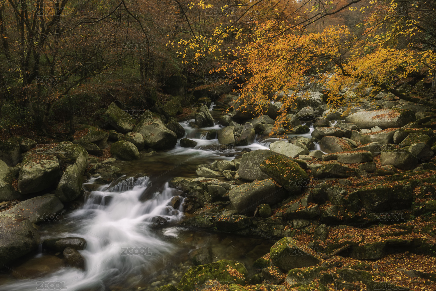 沈阳本溪老边沟,秋季枫树红叶溪流自然风光