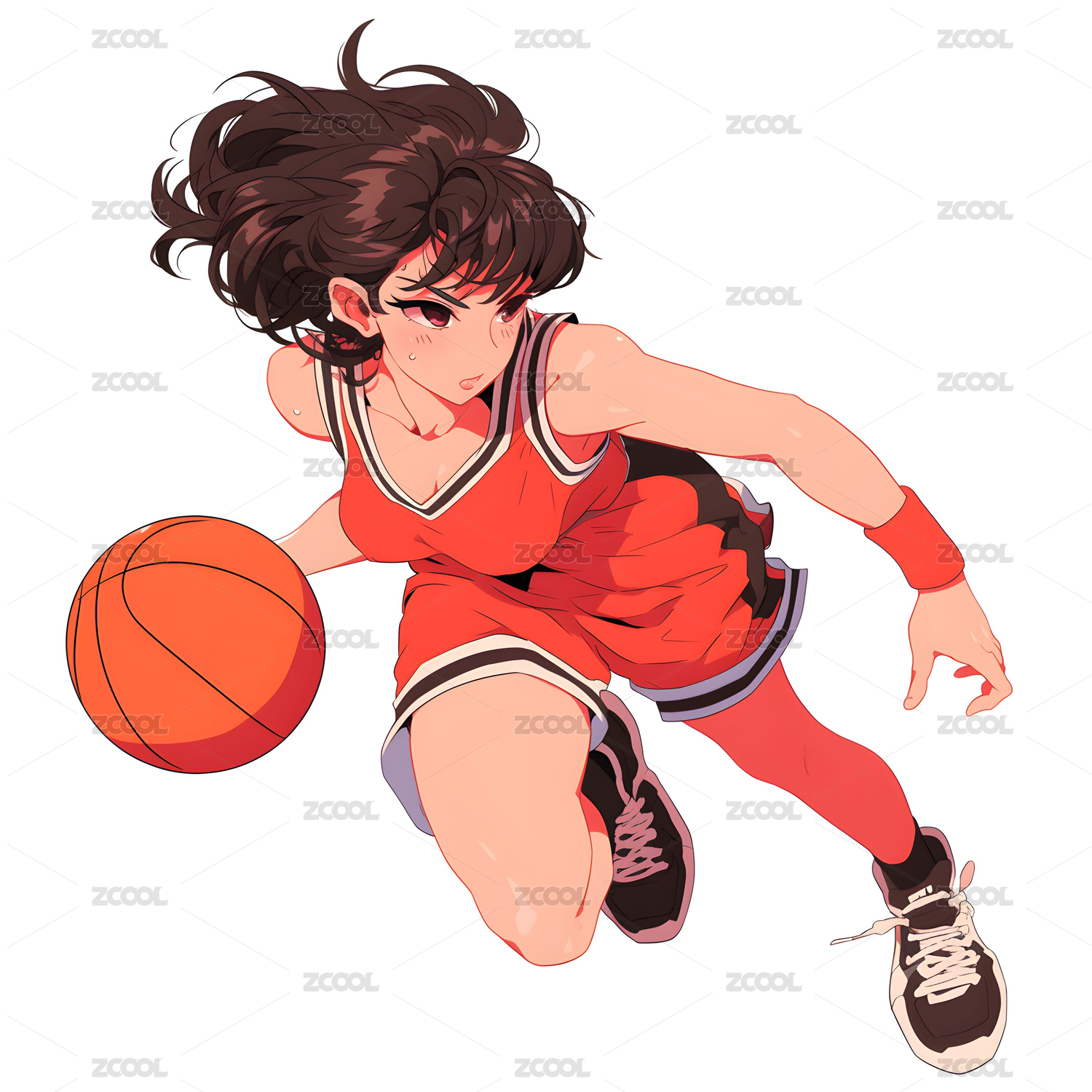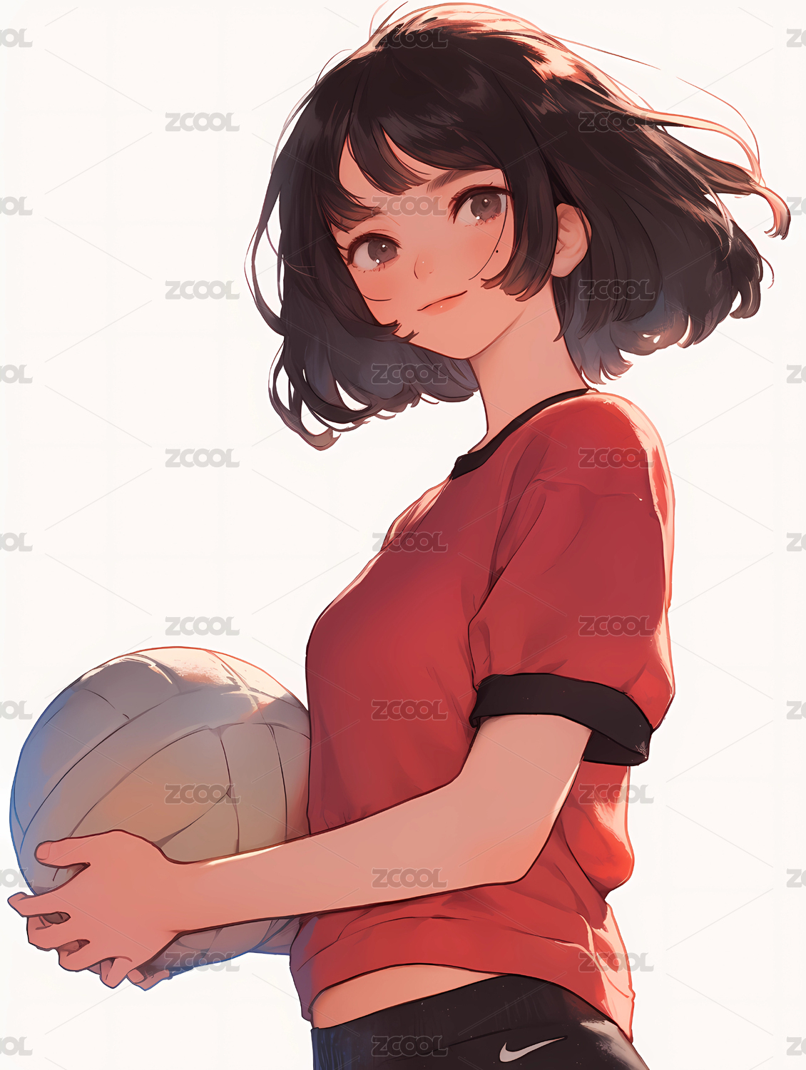 日漫风格 抱着篮球的少女