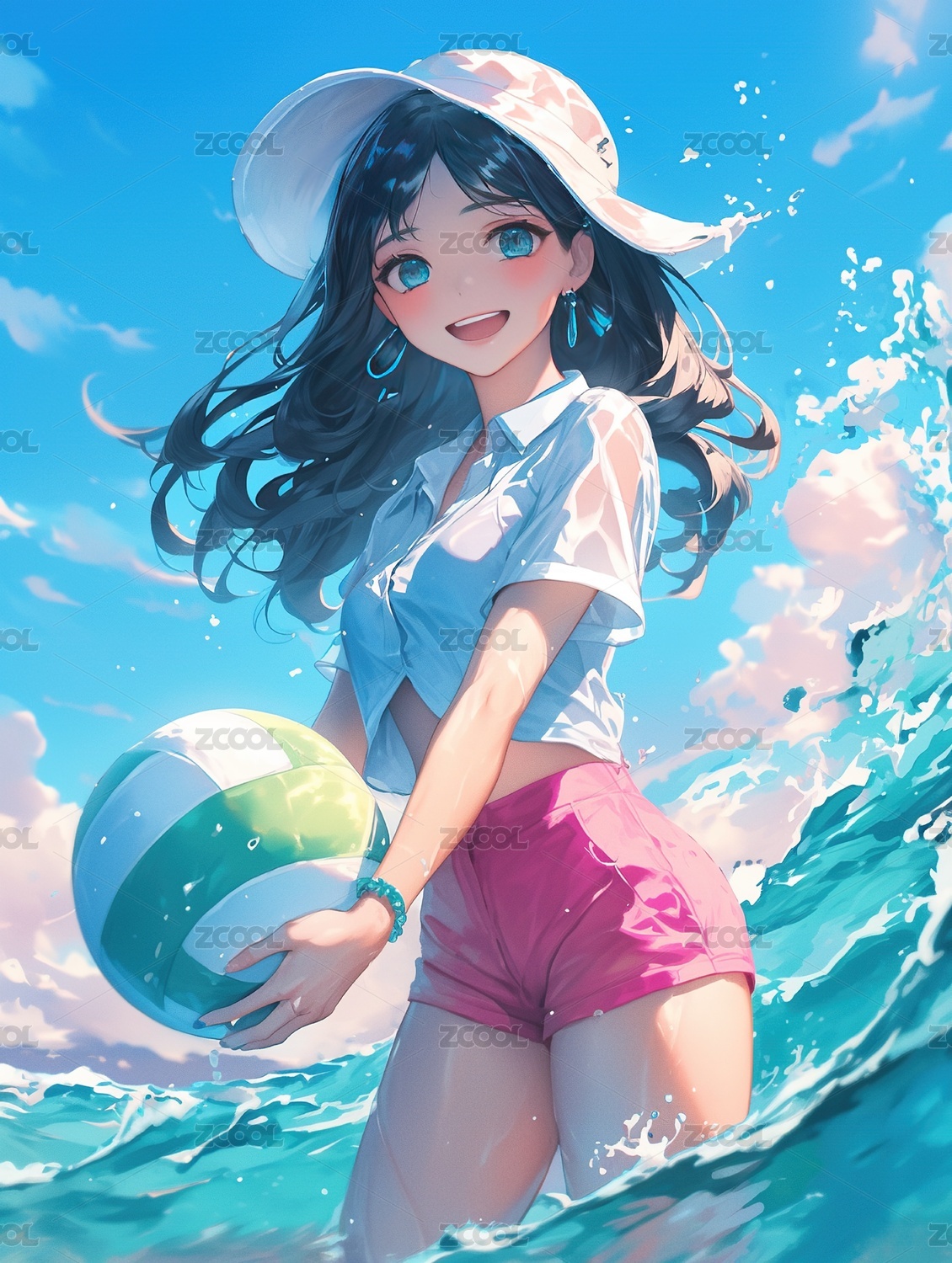 夏天水中打球的女孩
