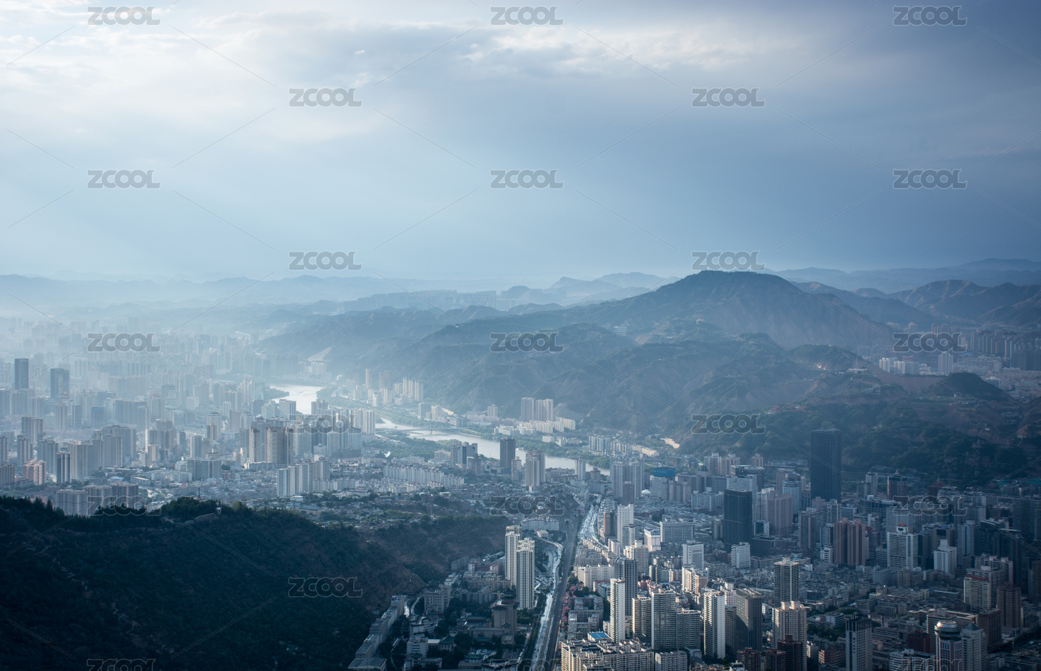 中国甘肃兰州最高点三台阁俯瞰城市全景风光