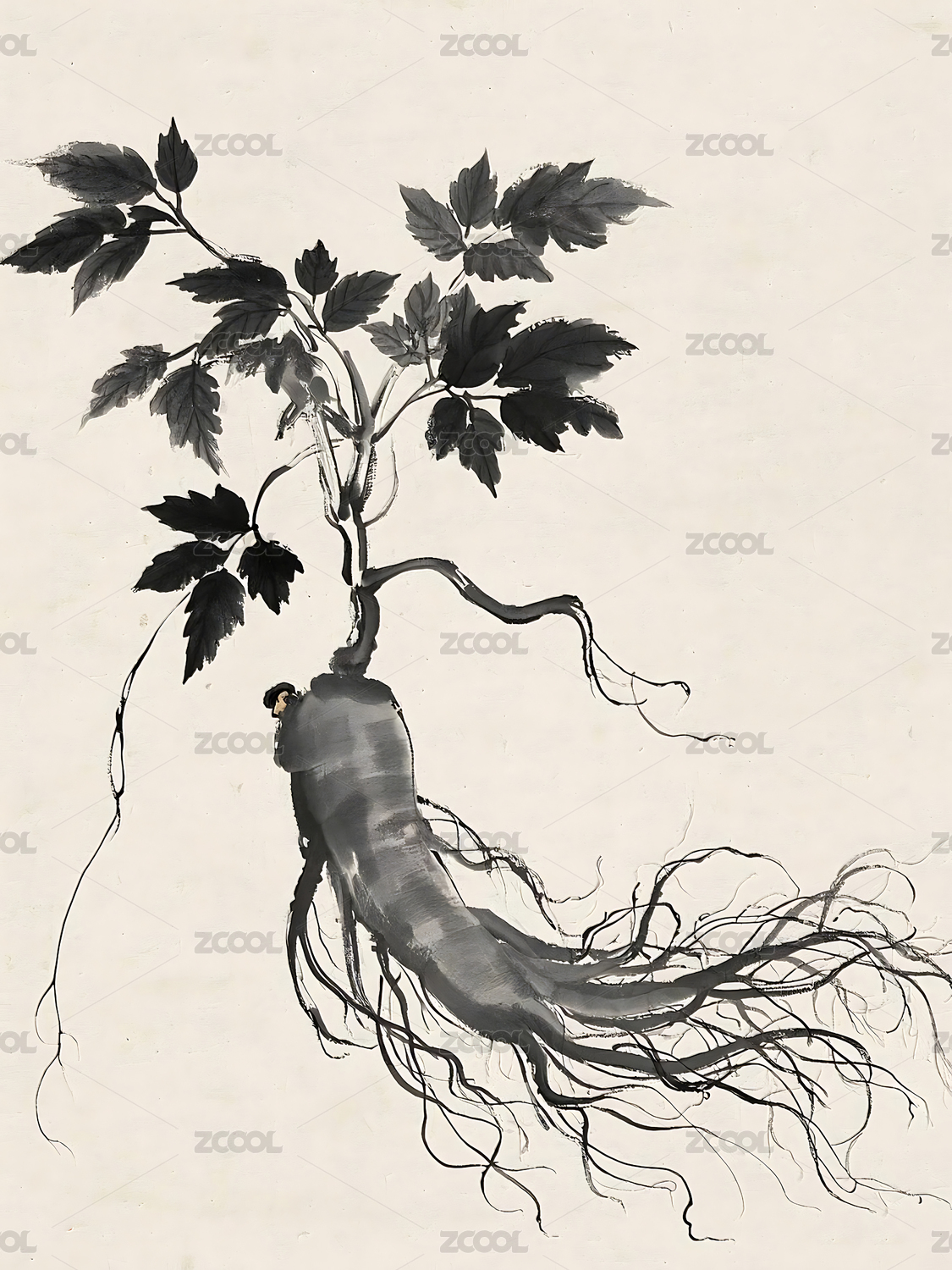 线稿,素描,植物,中药,医学,文化,传统,黑白,绘画,人参