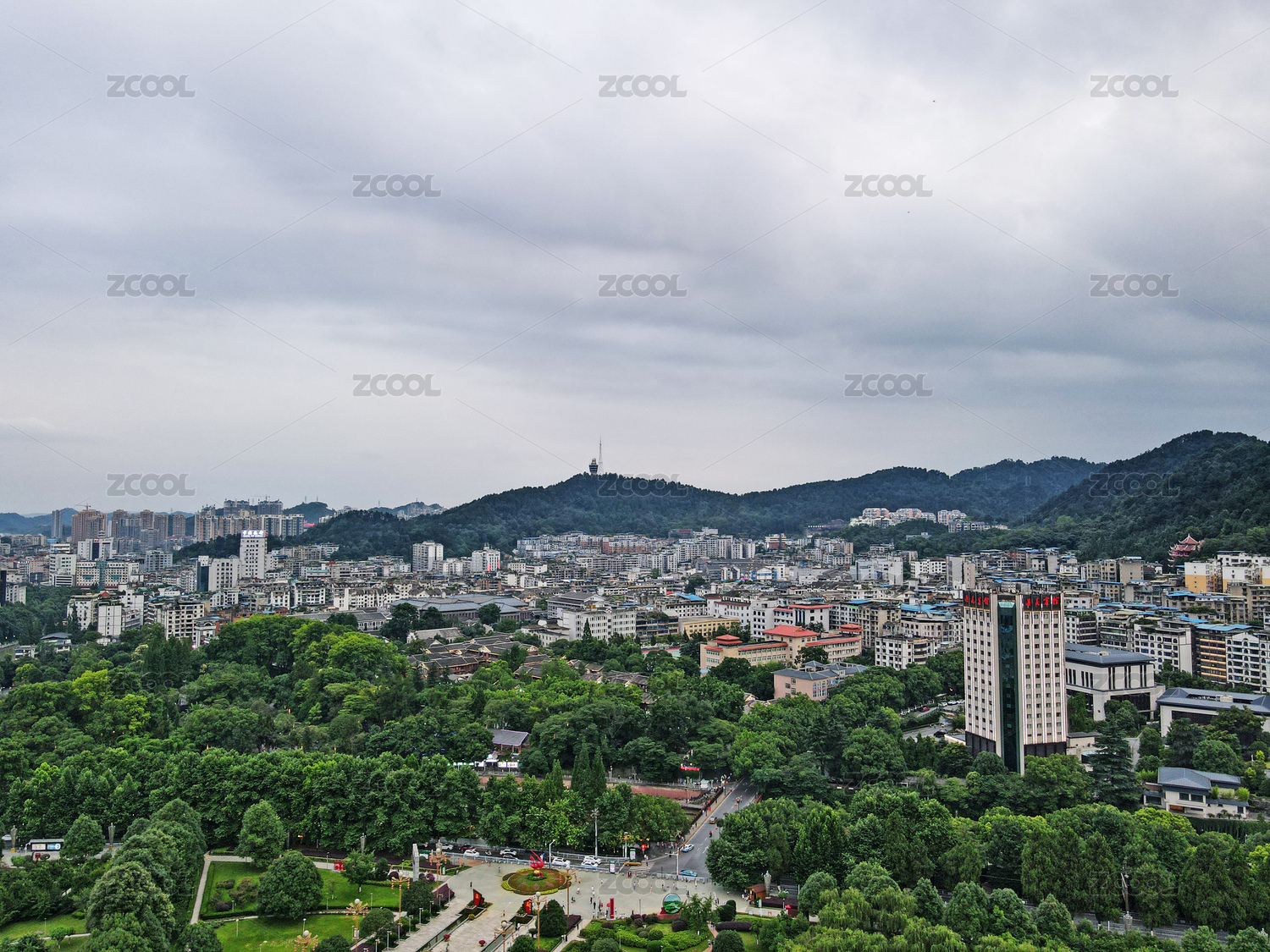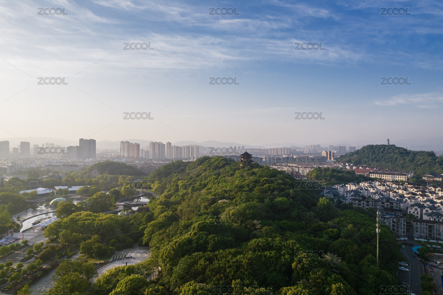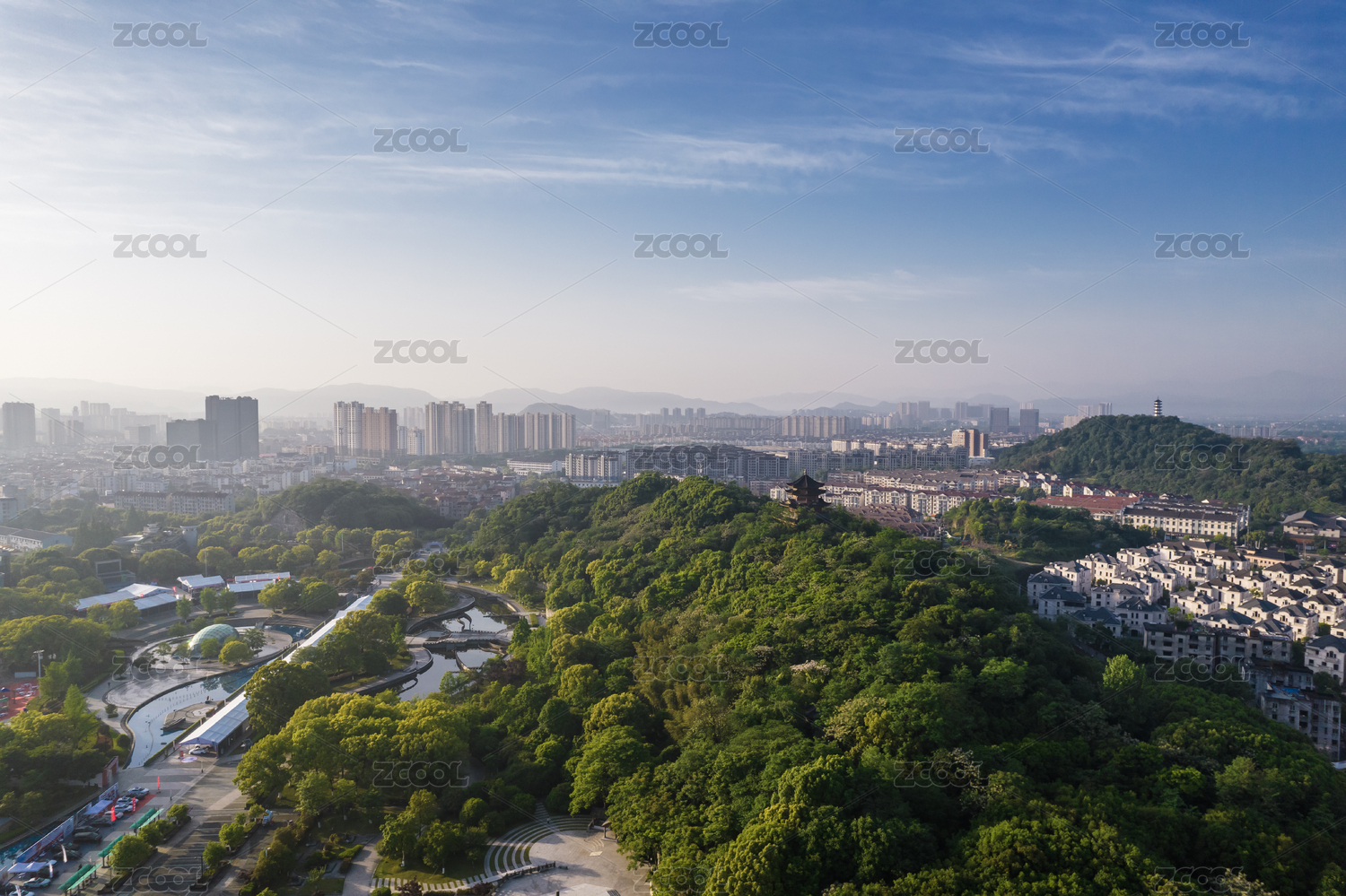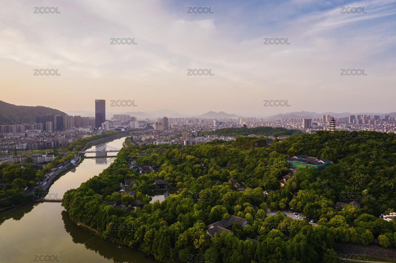日出时分,诸暨城市风光航拍,诸暨城市广场