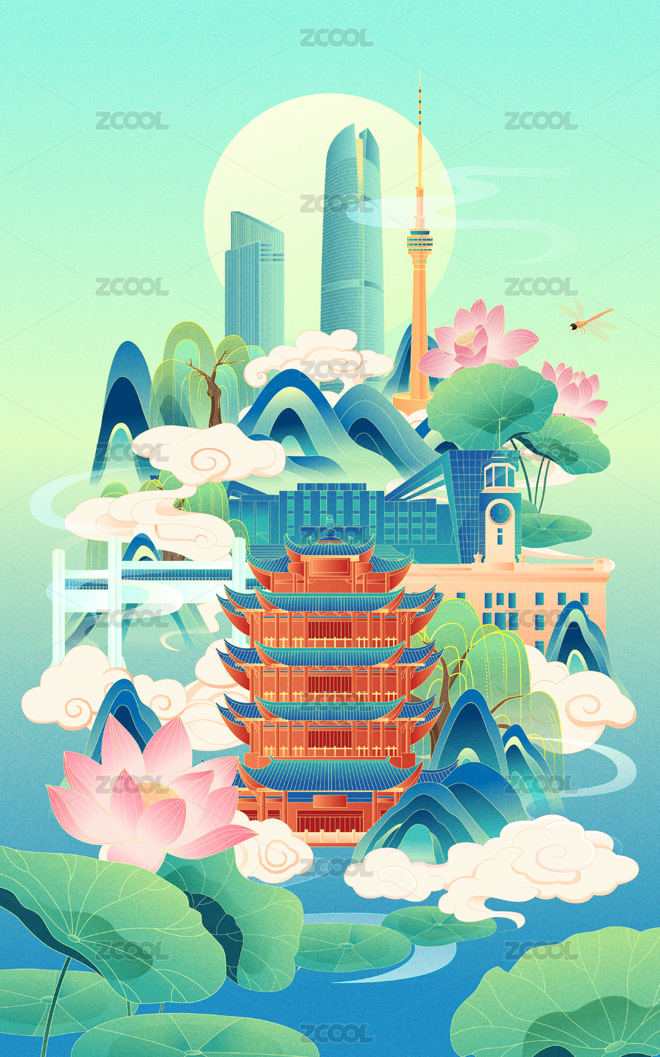 建筑,旅游,城市,风景,祥云,地标,旅行,线稿,国风,国潮风