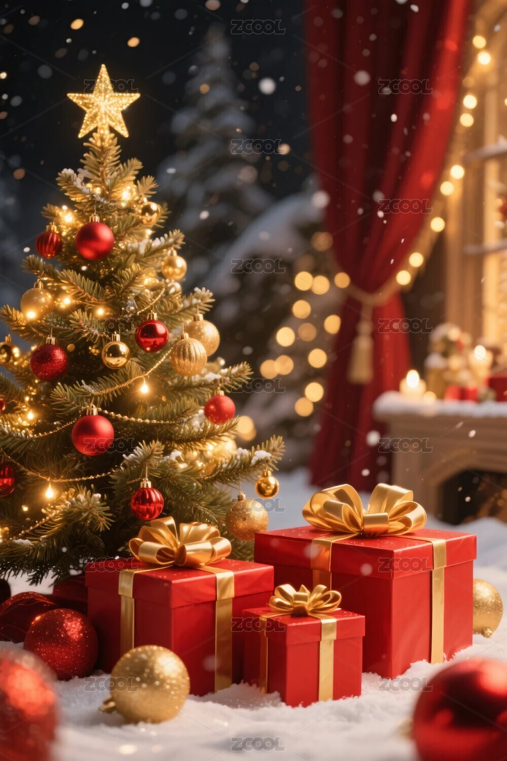 DXCZ202402,圣诞节,圣诞树,礼品盒,精致,3D,圣诞,圣诞球,温馨,深色背景