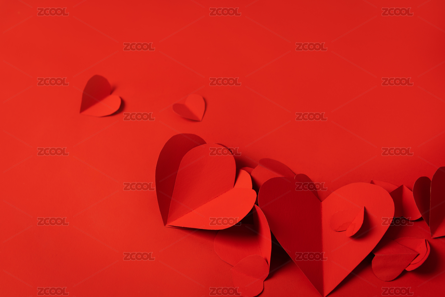 情人节红色背景上的红色爱心剪纸