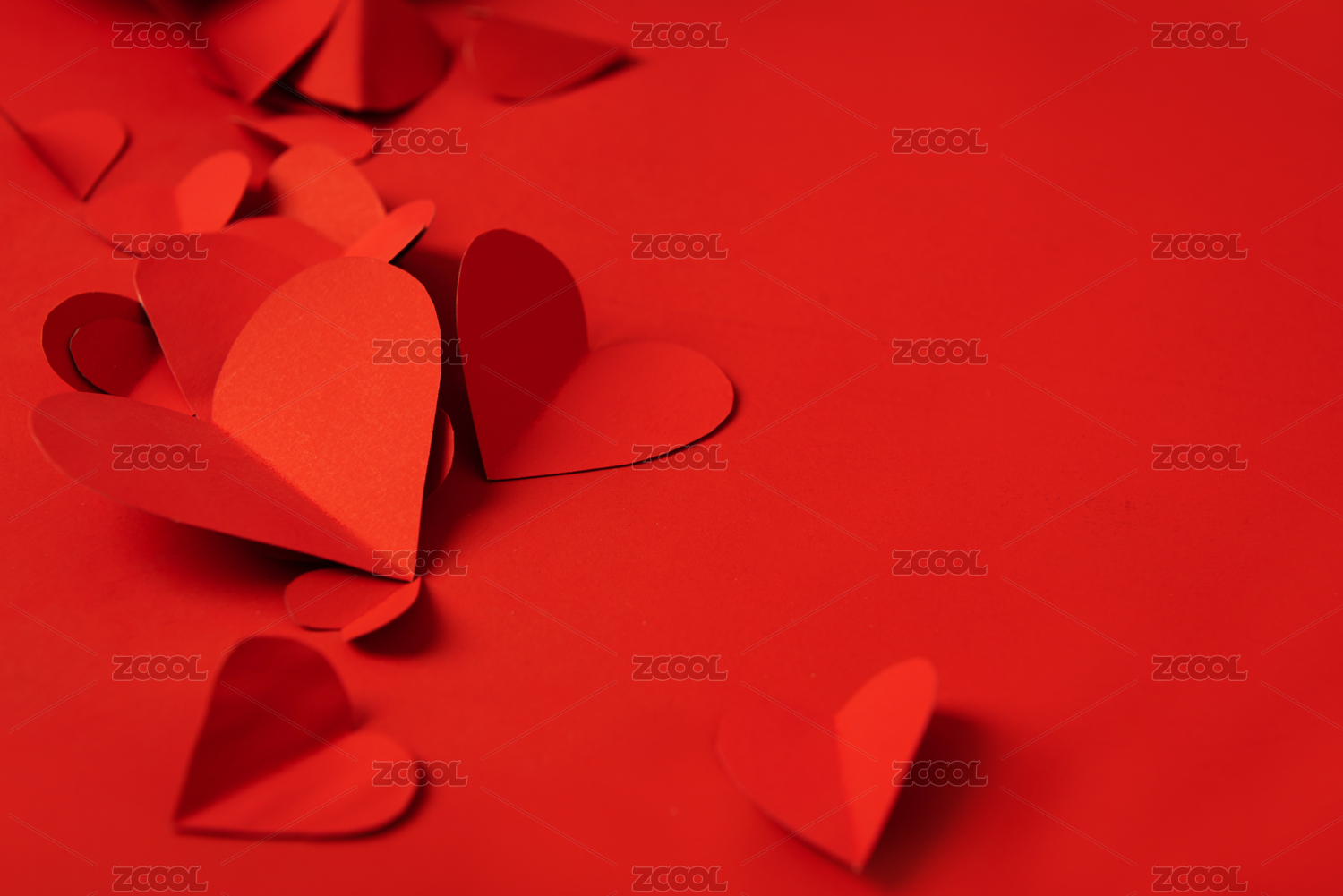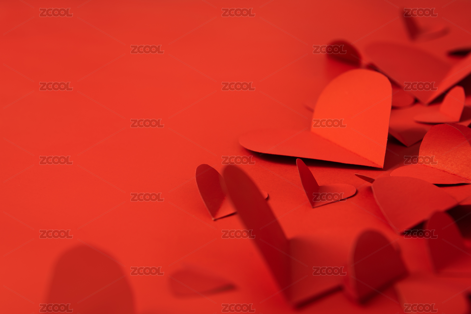 情人节红色背景上的一些红色爱心剪纸