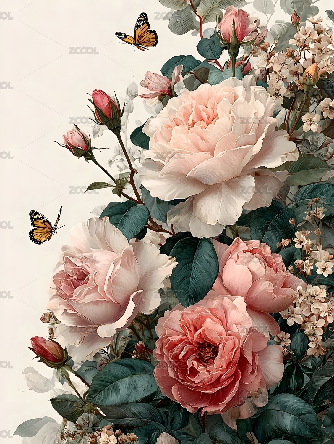 黄色玫瑰花,插画,优雅,高贵,花卉,植物,花瓣,叶片,茎干,花蕾