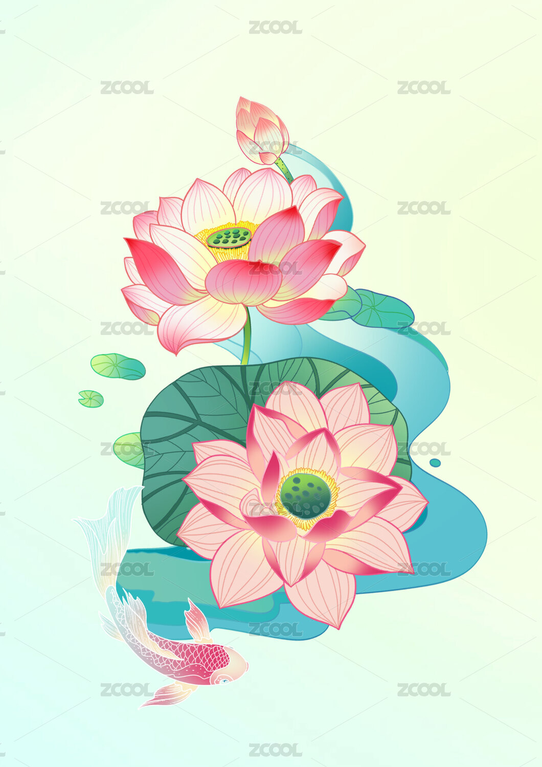 荷花国潮插画