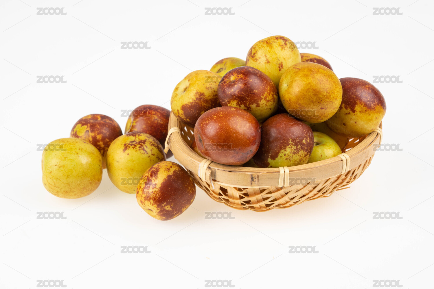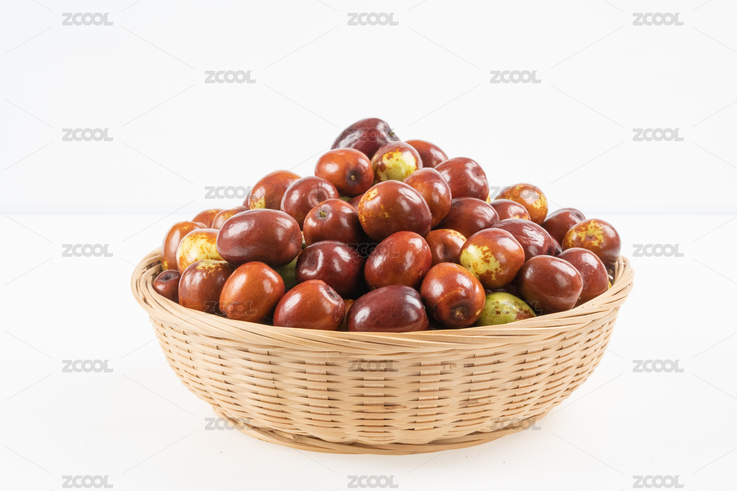白底色上的一筐新鲜的新疆大枣