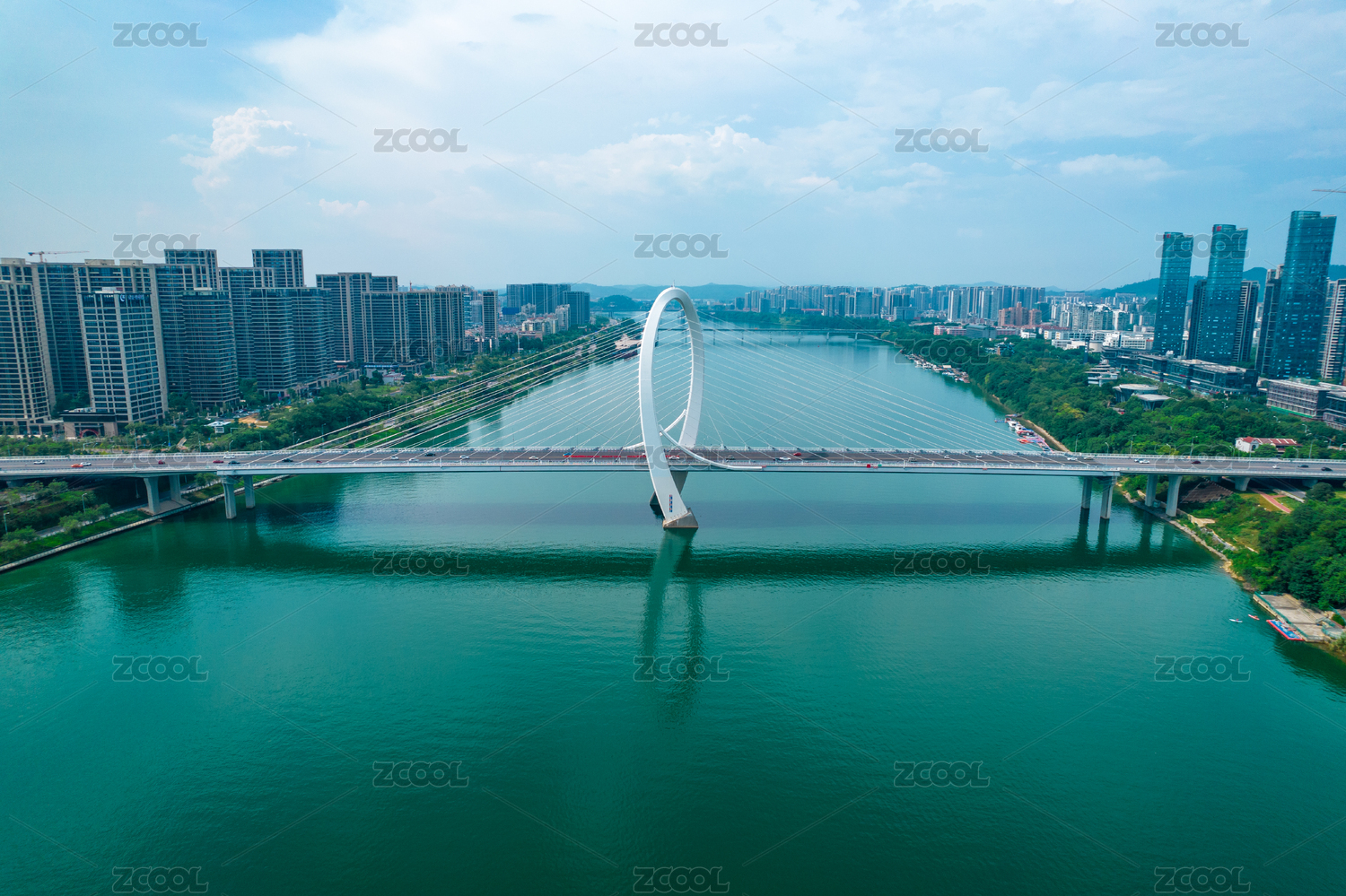 航拍中国广东珠海斗门黄杨河井岸大桥