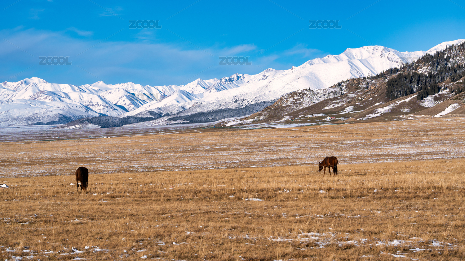 中国新疆伊犁州奎屯市安集海大峡谷旁的牧场