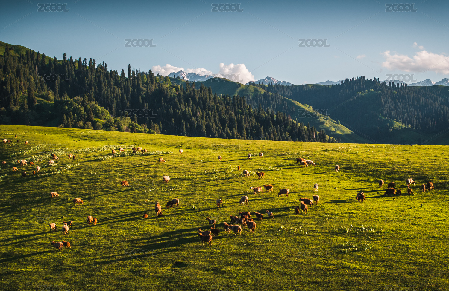 中国新疆伊犁那拉提草原高山牧场牛羊成群