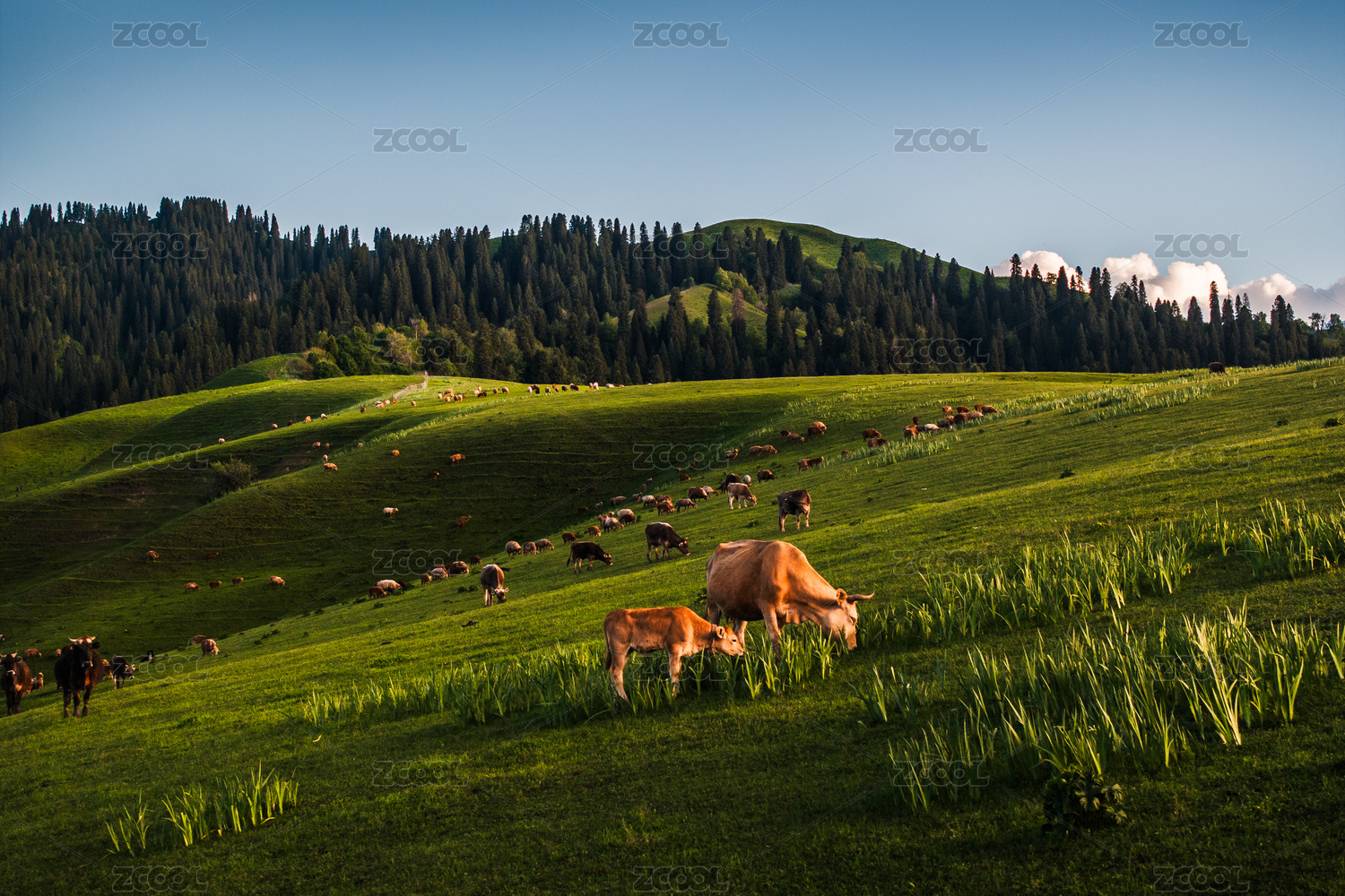中国新疆那拉提草原上的牛群