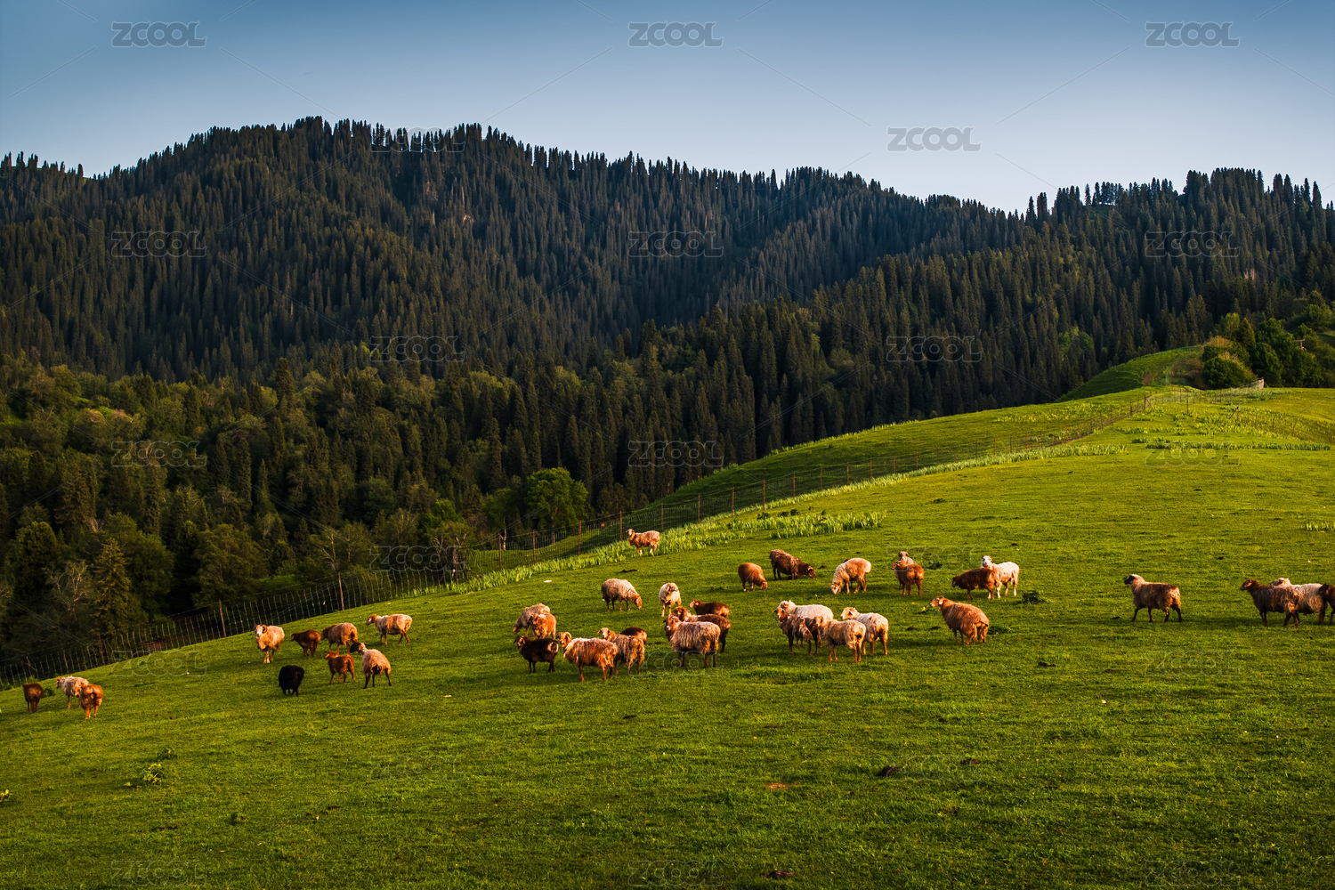云杉,伊犁,农场,夏天,山脉,山谷,新疆,树木,树林,森林