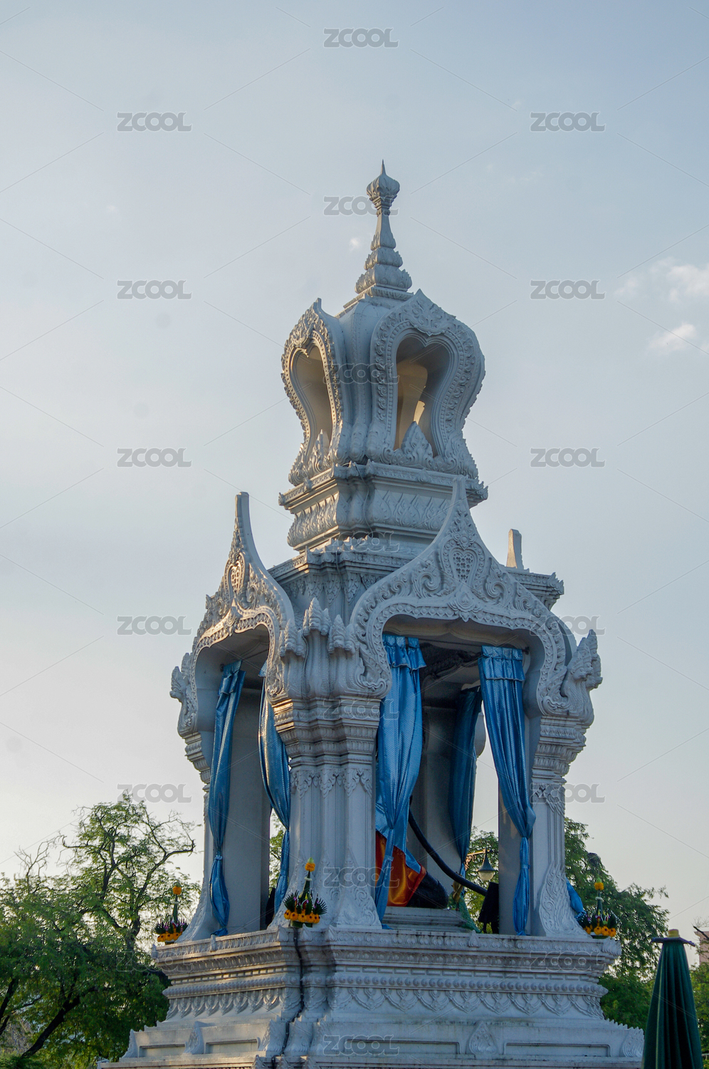 蓝天下的泰国甲米镇的克拉瓦兰佛寺庙的宫殿