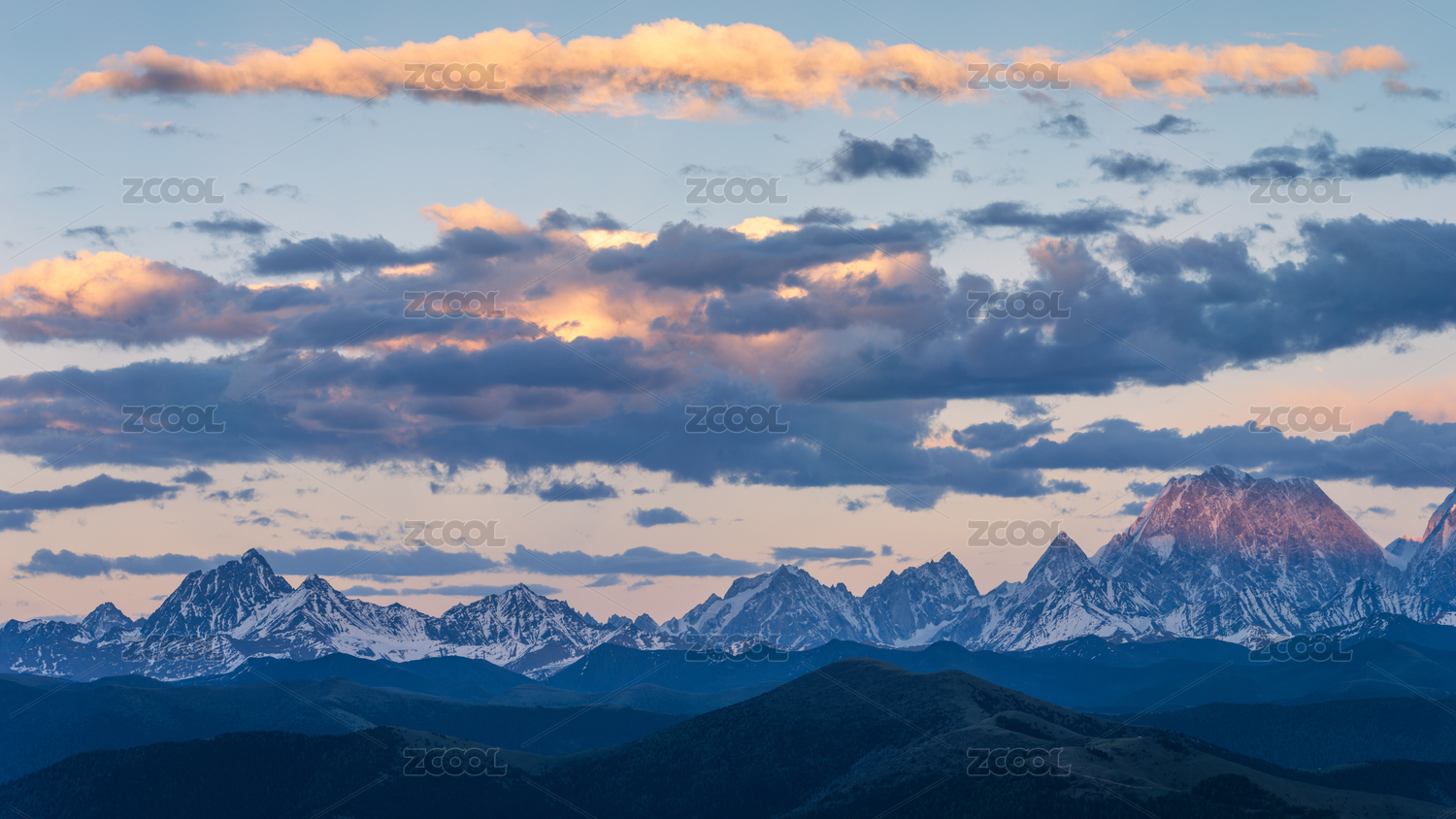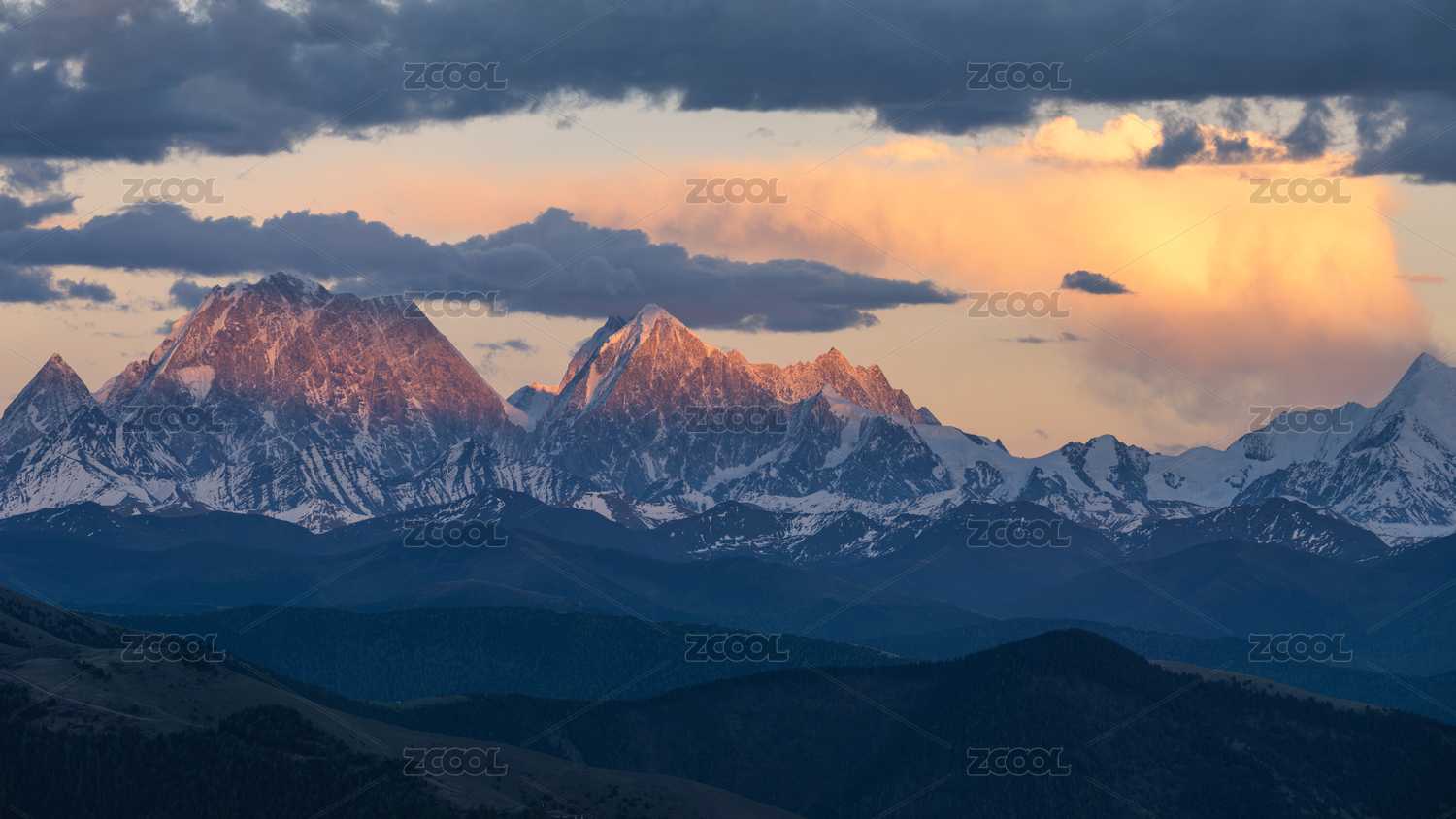 中国四川甘孜藏族自治州贡嘎山日照金山风光