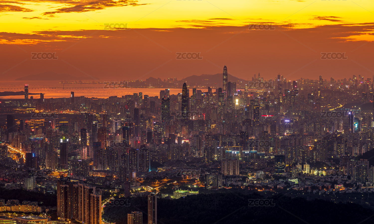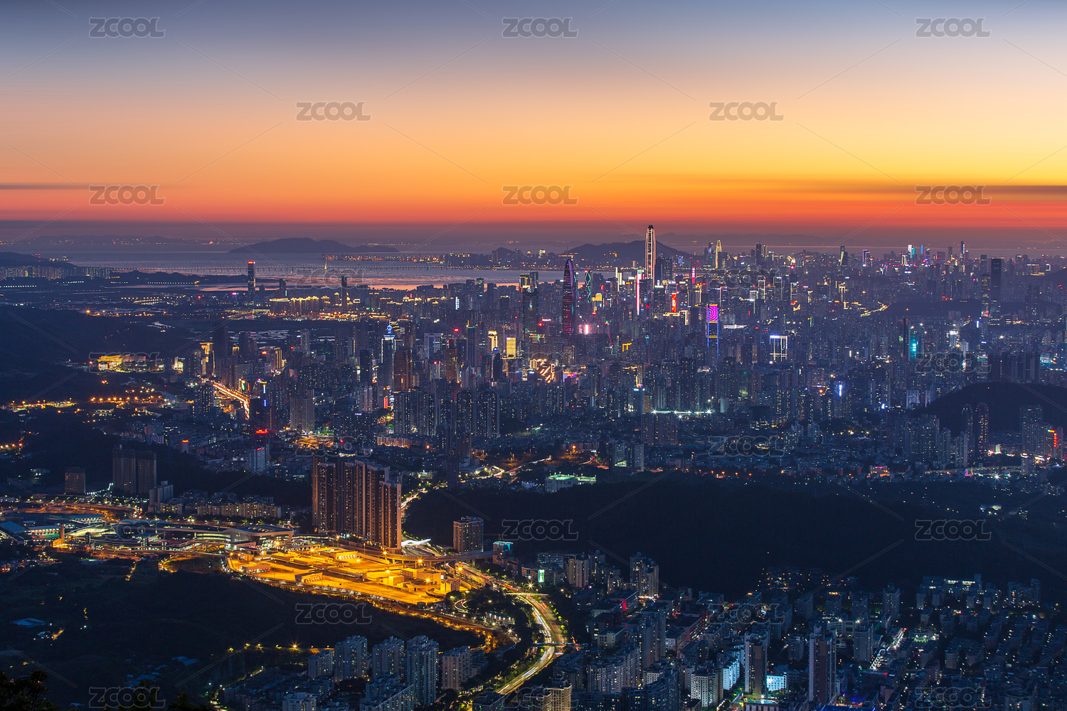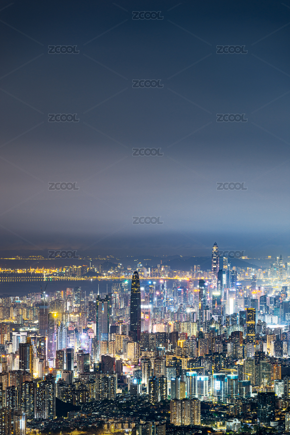 梧桐山,高视角,城市生活,摩天大楼,夜景,罗湖区,福田区,深圳,深圳地标,天际线