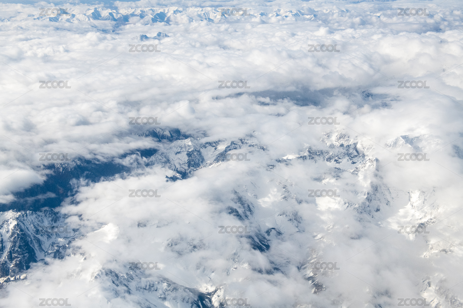 飞机上拍摄的雪山与云层