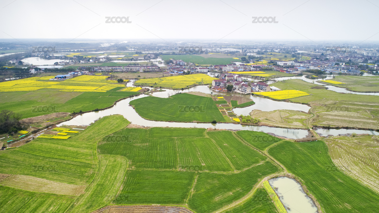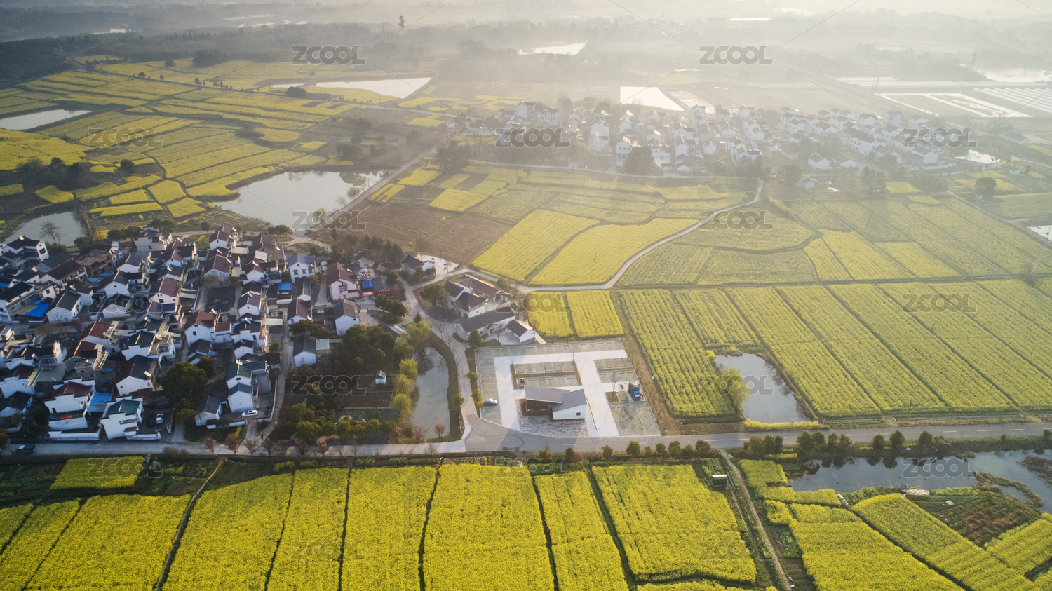 航拍油菜花及中国乡村