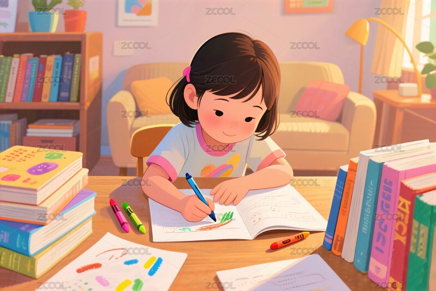 读书,学生,AIGC202402,水彩风,书籍,书桌