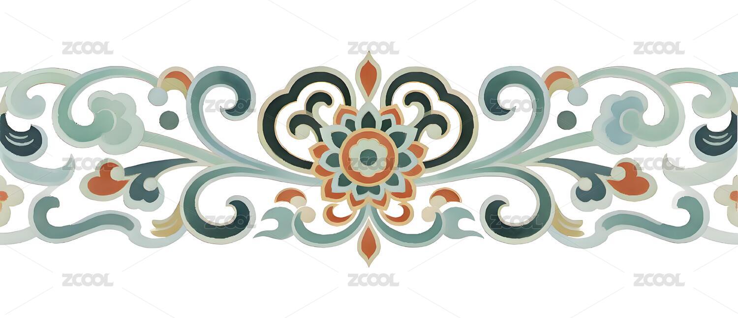 颜色丰富的传统花纹纹样花边图案,白色背景