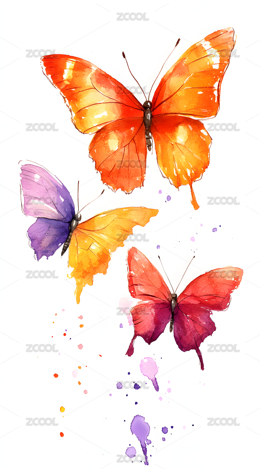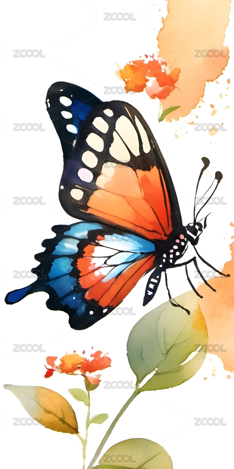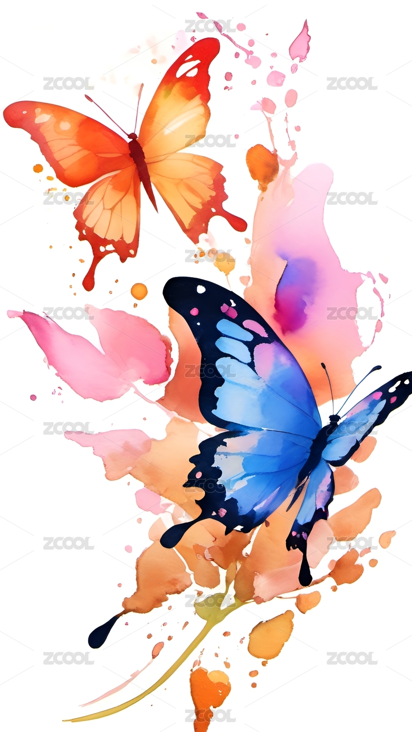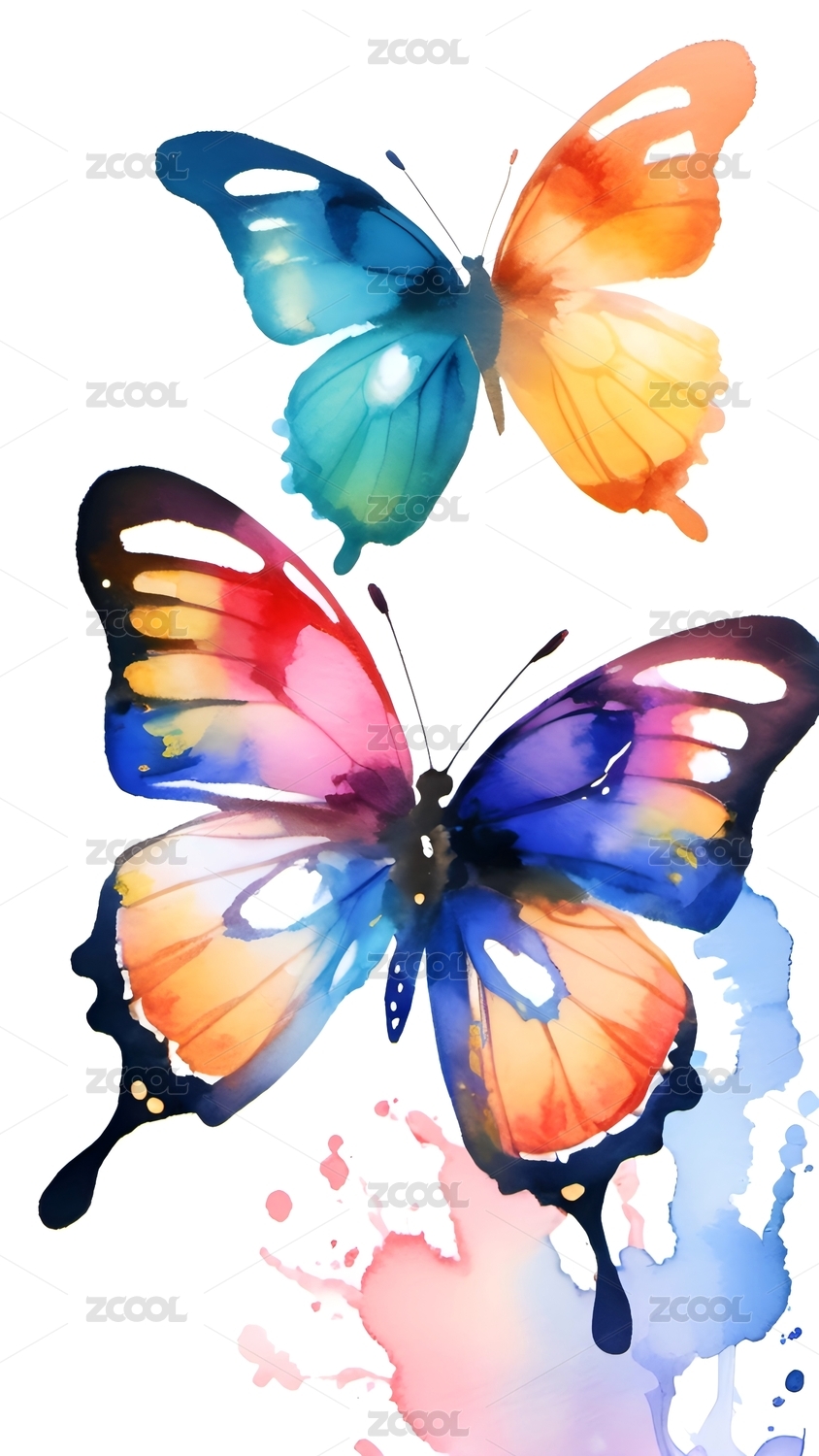 唯美,水彩,蝴蝶,插画,白底图,背景