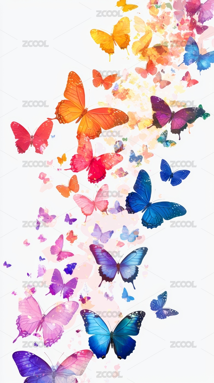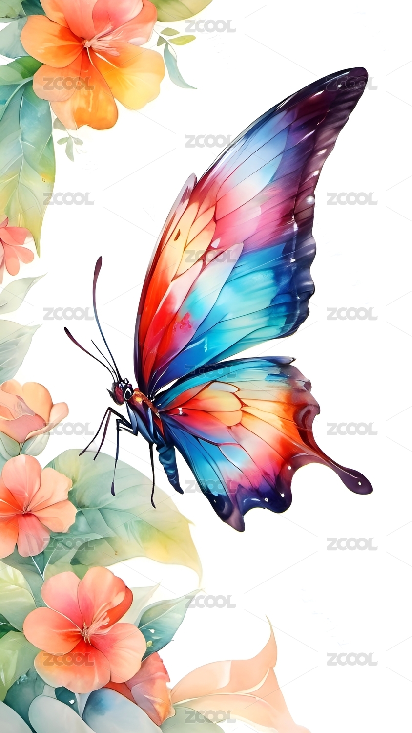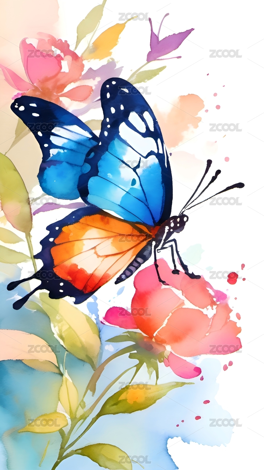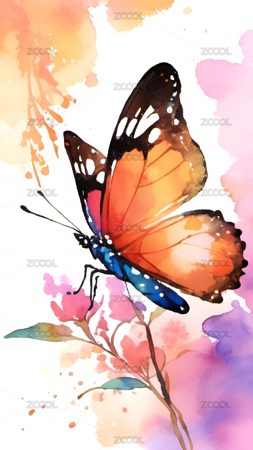 唯美,水彩,蝴蝶,插画,白底图,背景