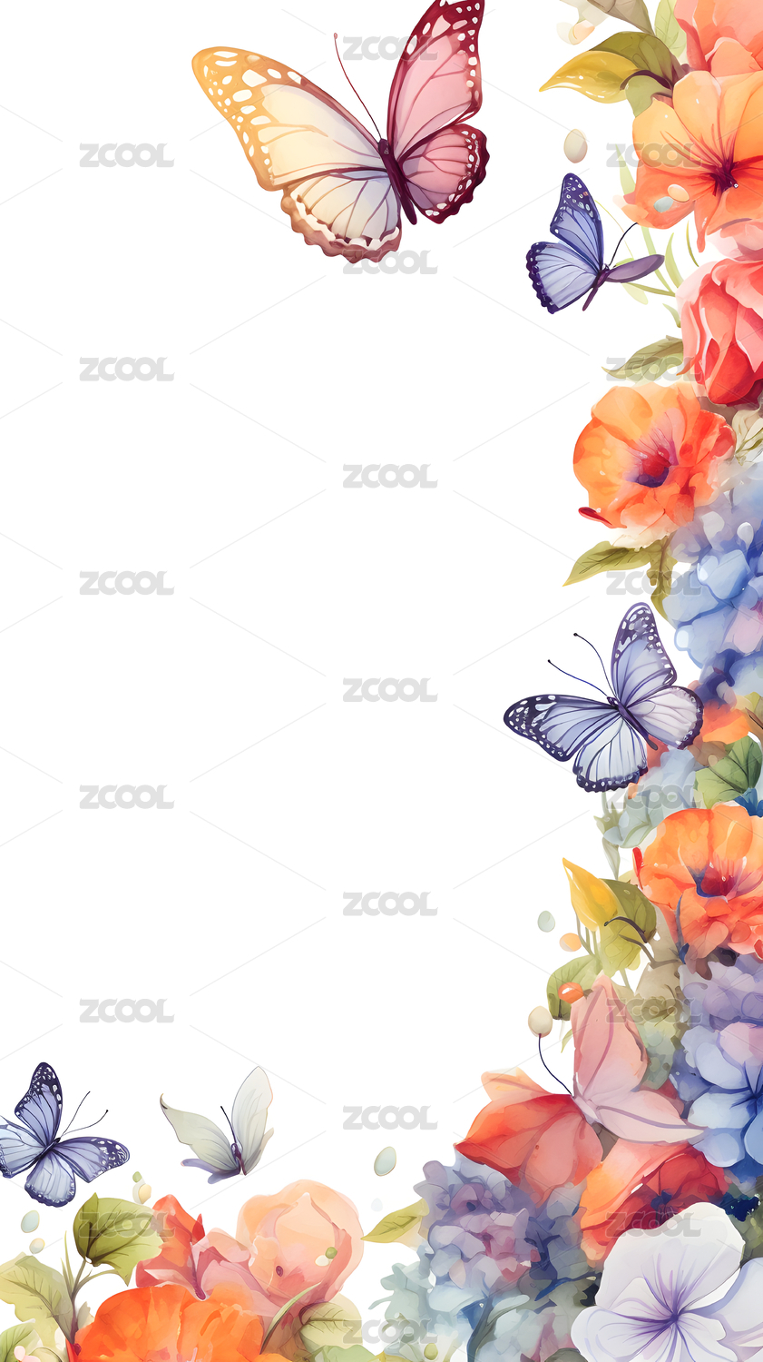 数码复古水彩花朵蝴蝶装饰抽象图形海报背景