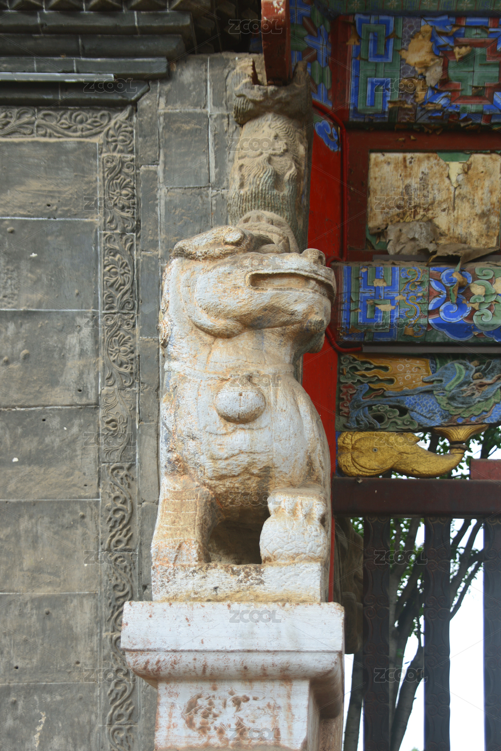 古建筑门前的石狮子