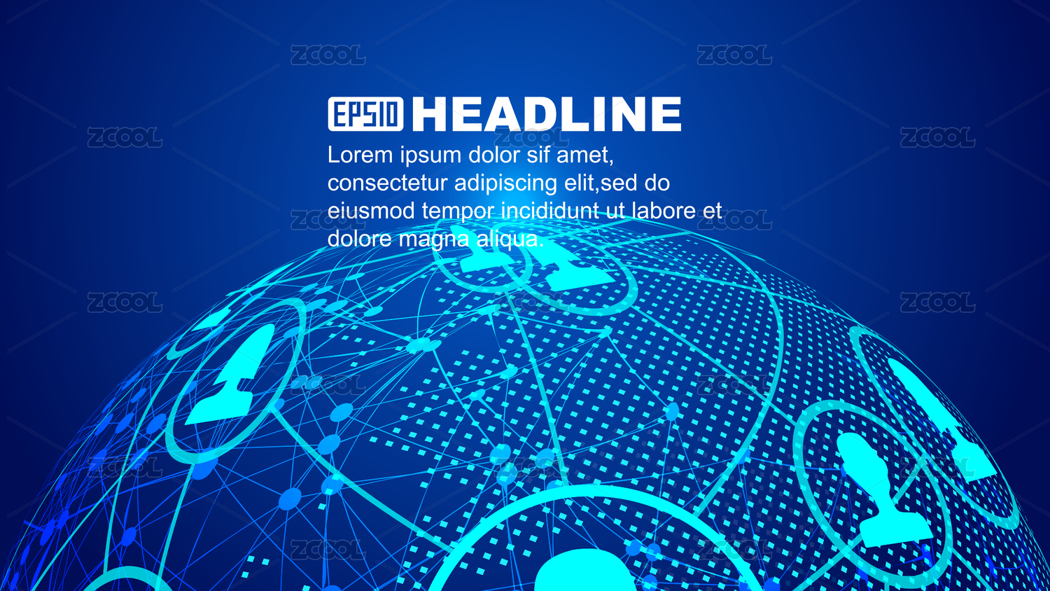 点线链接、数码地球构建的全球科技互联网网络技术矢量背景