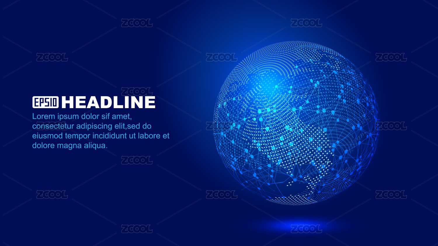 数码地球、点线结合,全球网络科技抽象矢量背景