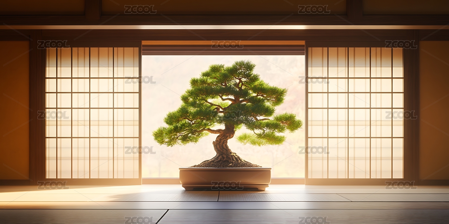 空房间,迎客松,木地板,地板,假山,新中式,风格,人造空间,岩石,场景