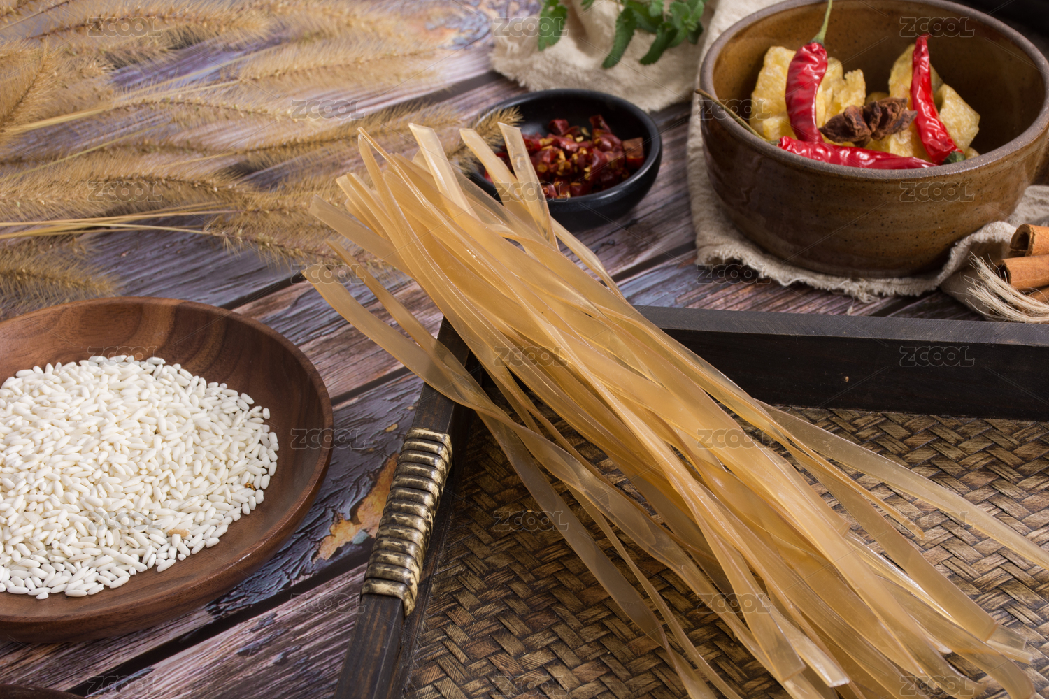放在复古木盘里的手工米粉