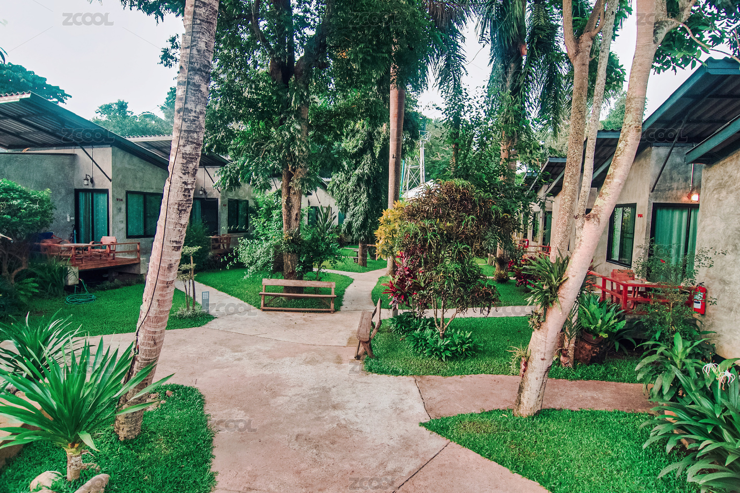 海南海边小区里的别墅和亚热带植物