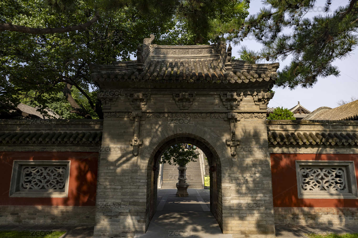 中国山西省太原市晋祠十方奉圣禅寺园林门古建筑